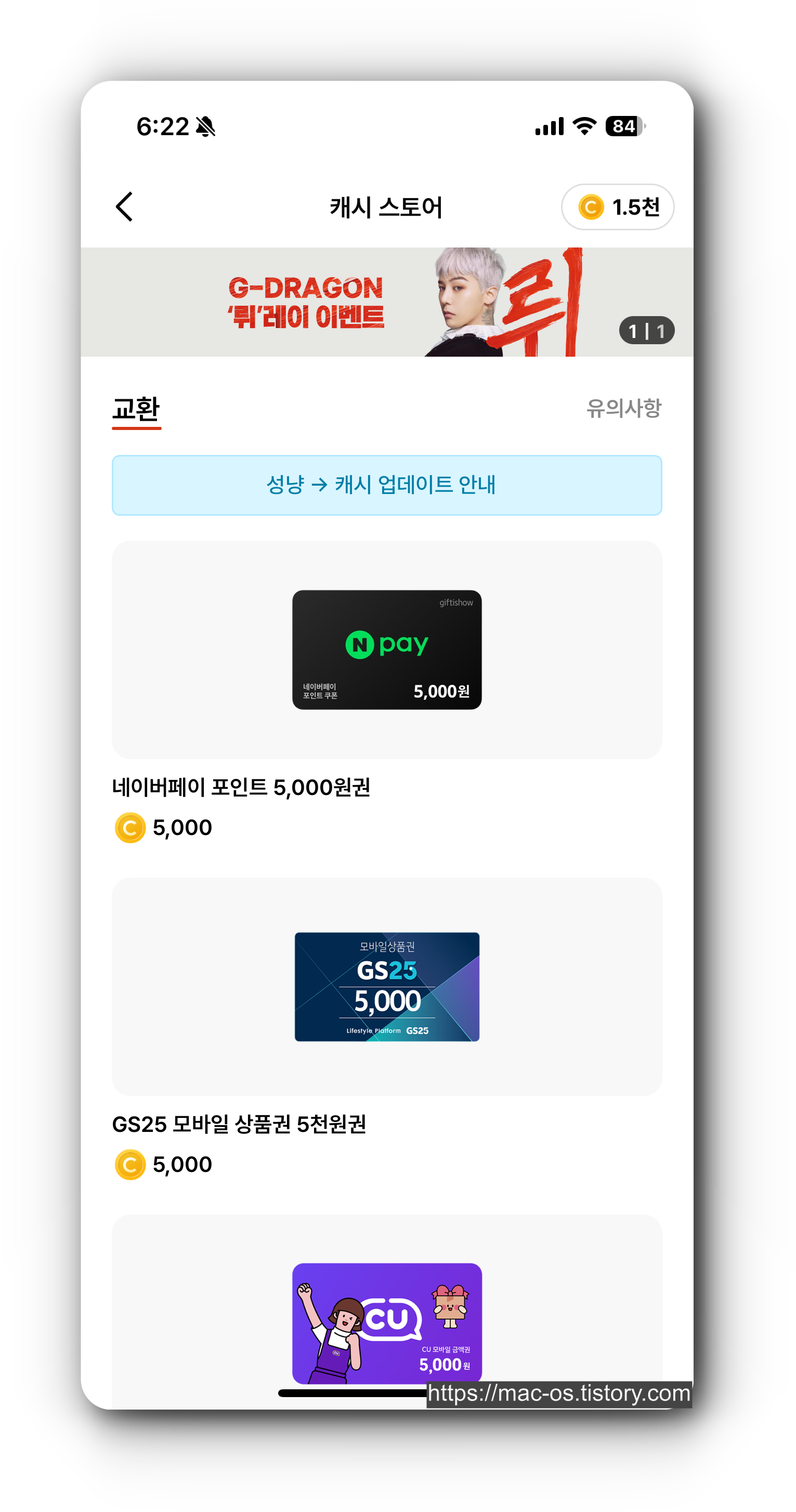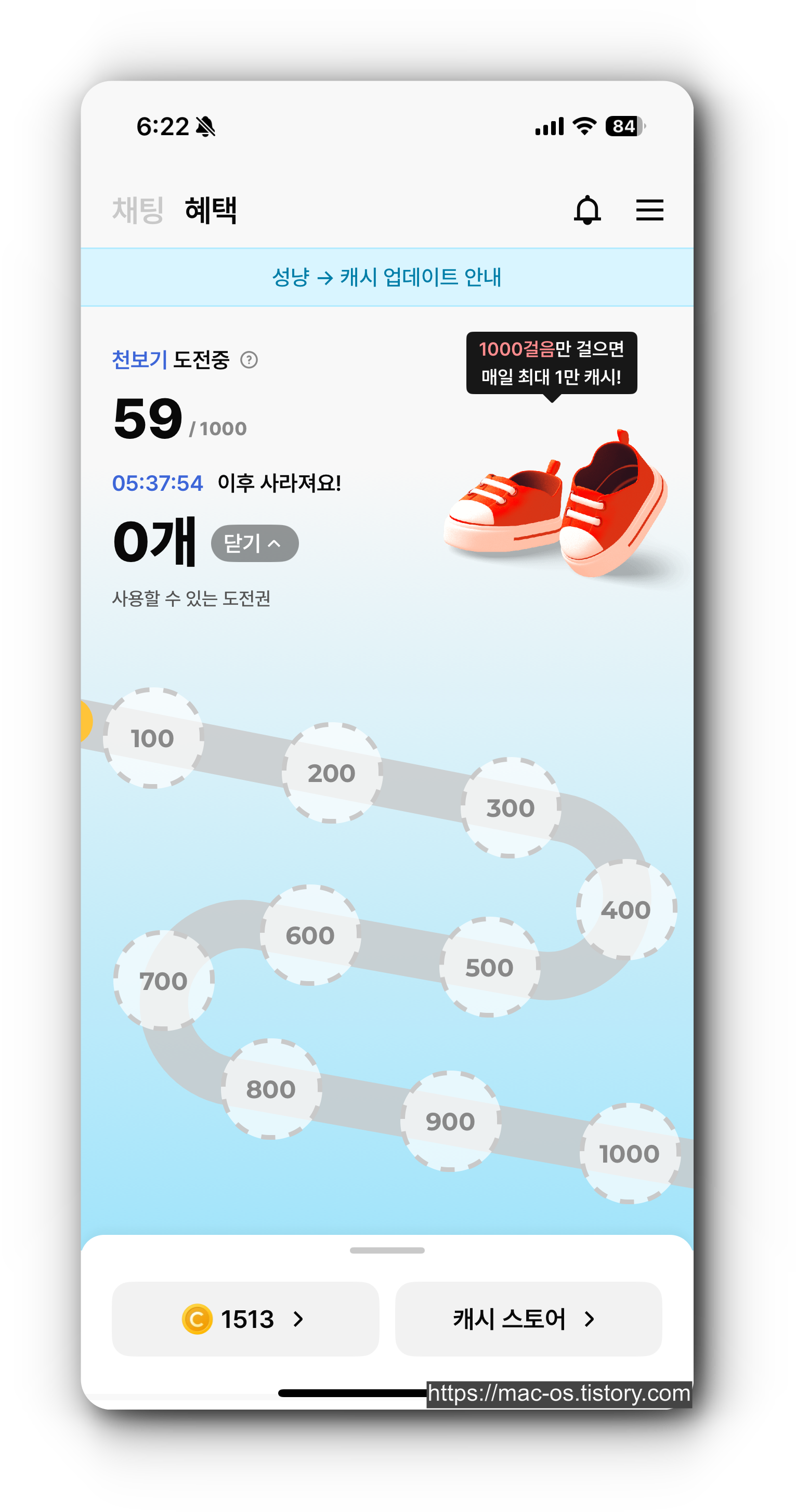 - 매일 1000걸음을 걸으면 최대 1만 캐시 획득 가능