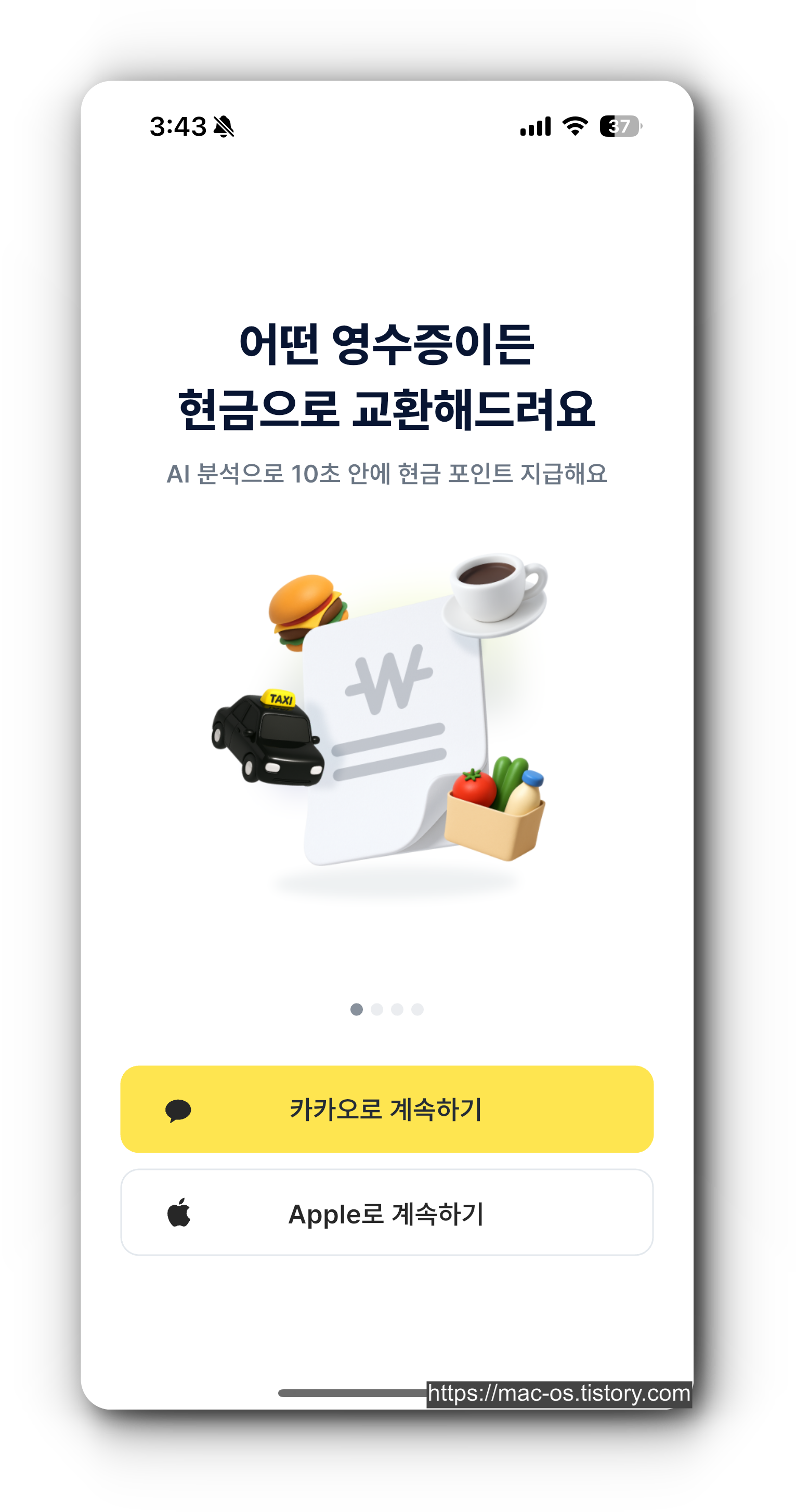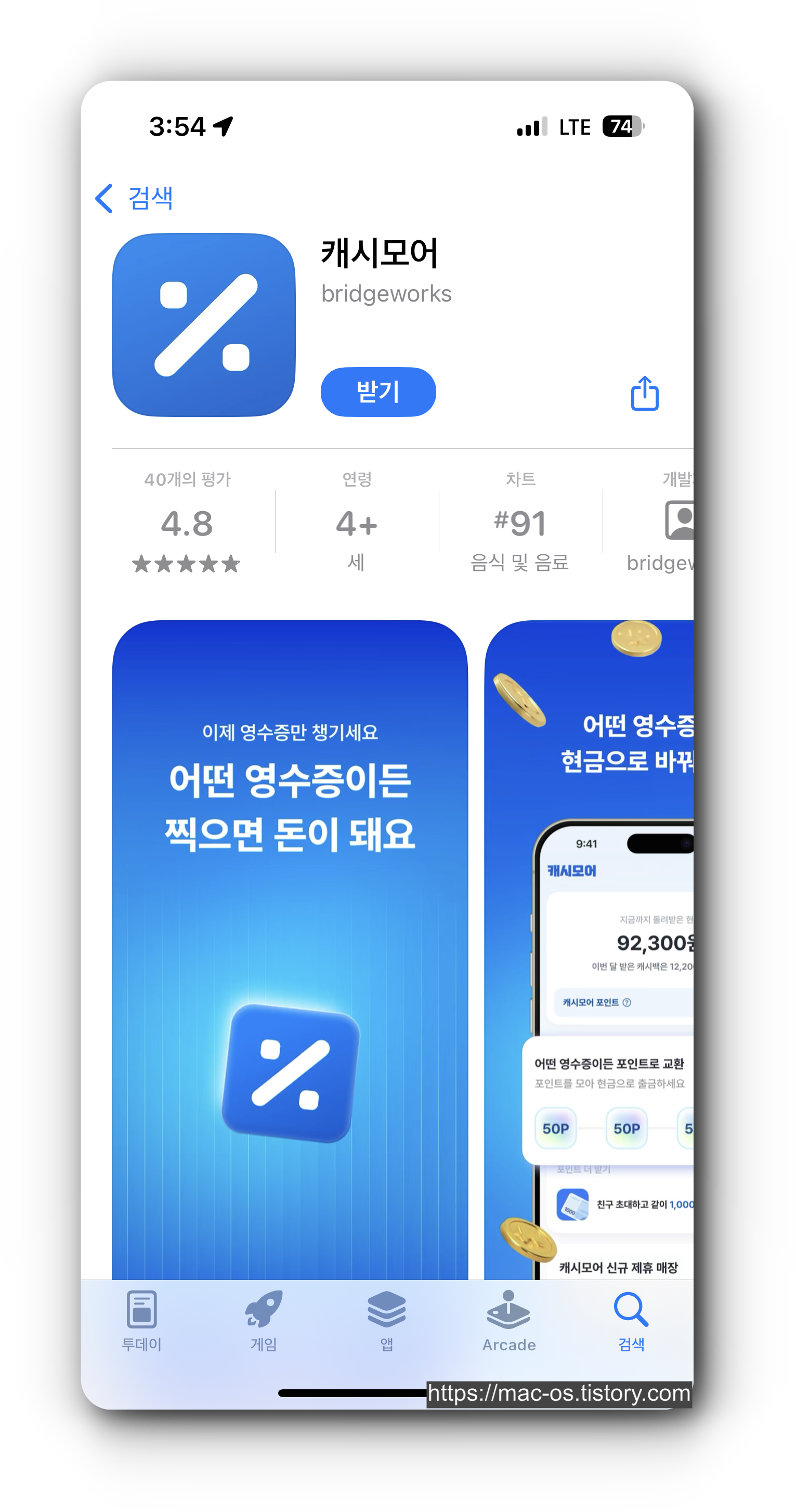 캐시모어 앱은 구글 플레이 스토어와 애플 앱스토어에서 설치하여 카카오/애플 계정으로 가입할 수 있습니다.