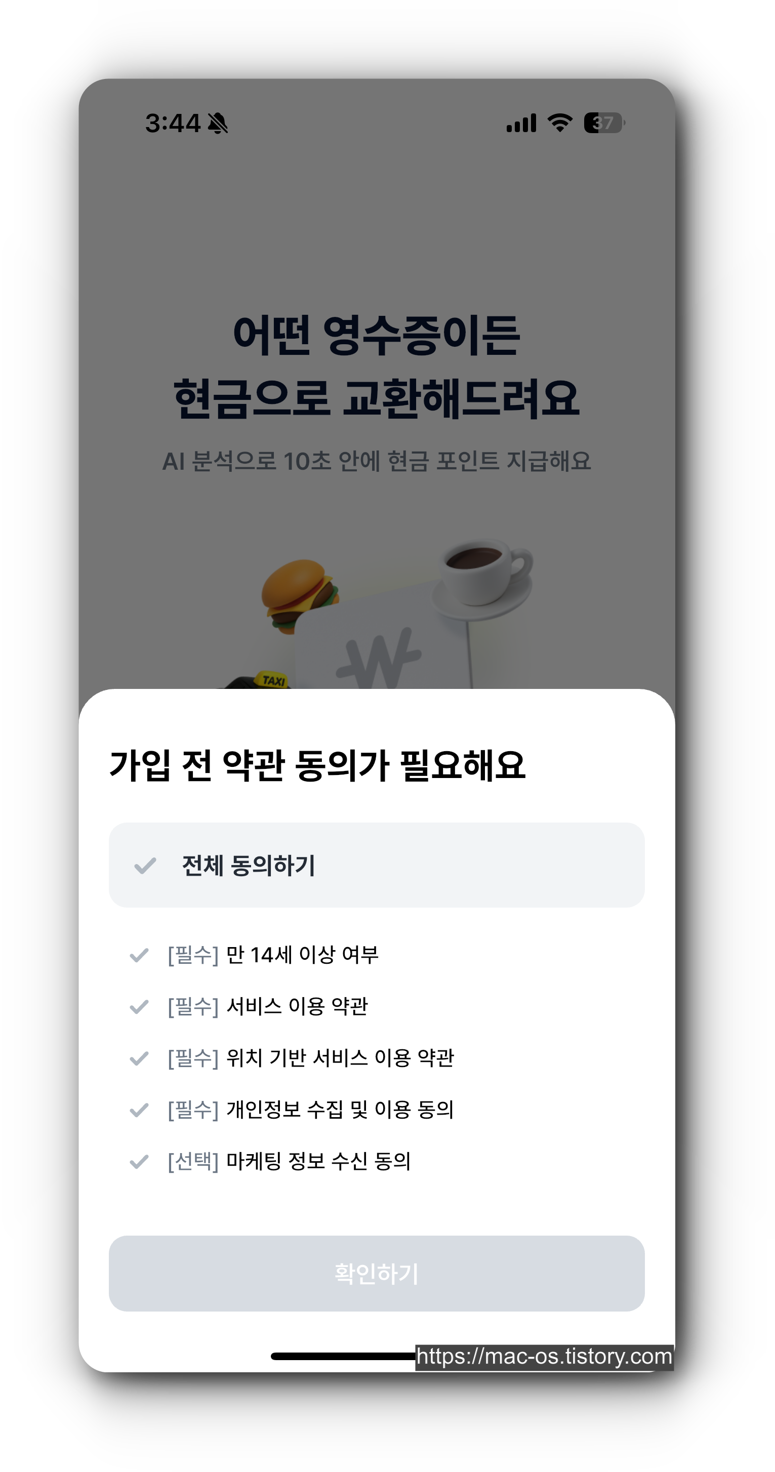 친구가 보낸 링크로 영수증 사진 찍고 현금 1,000원 받아가세요