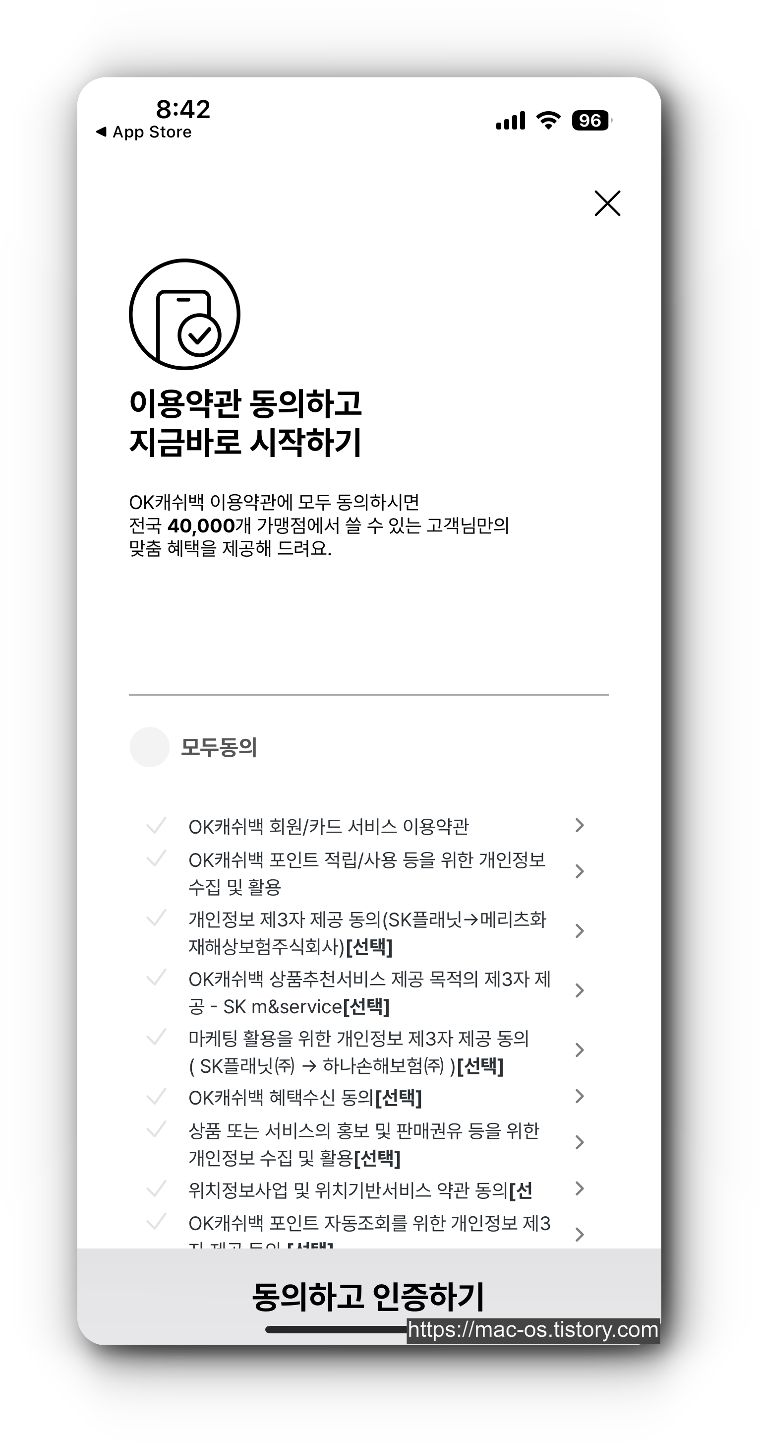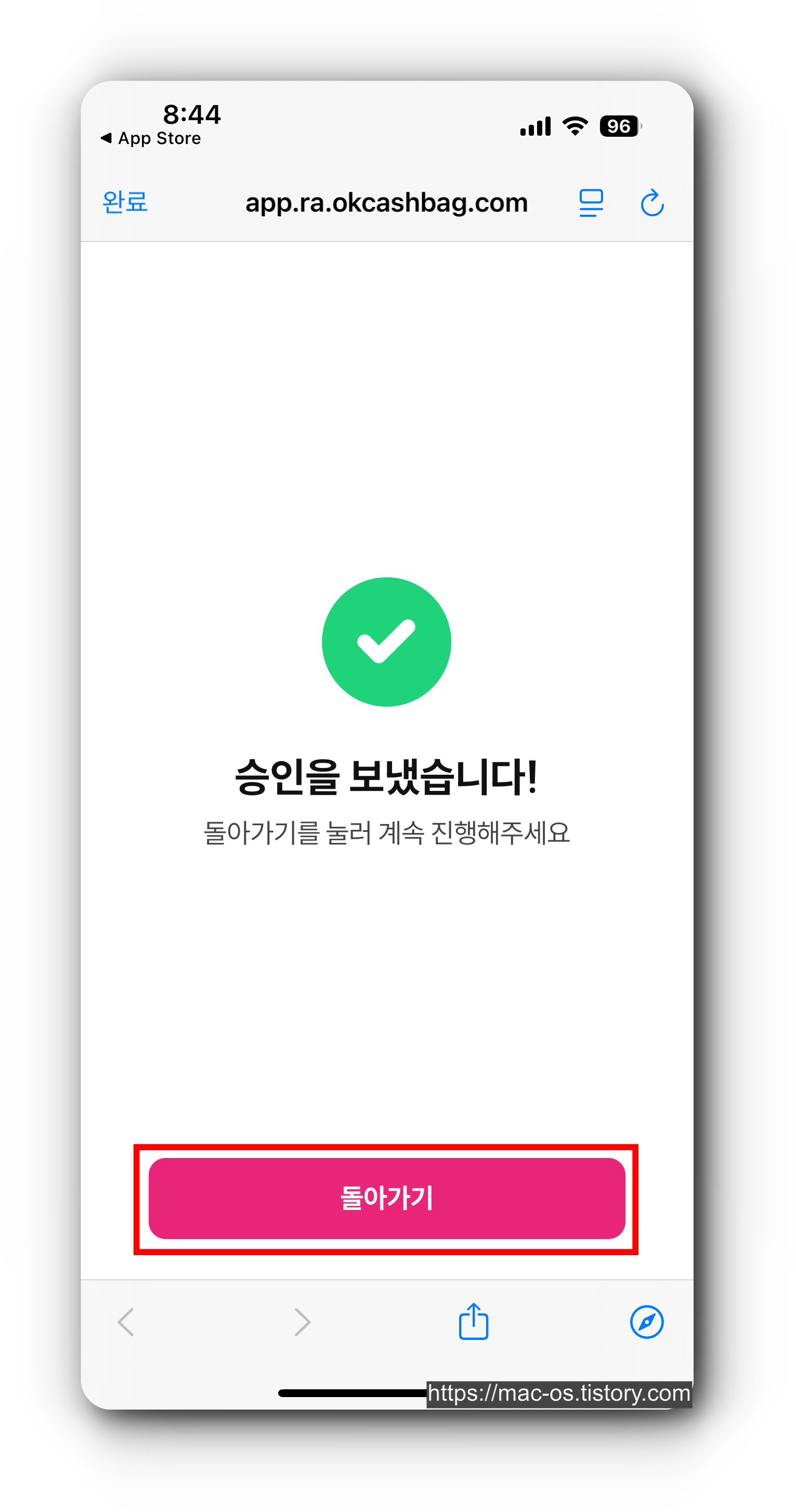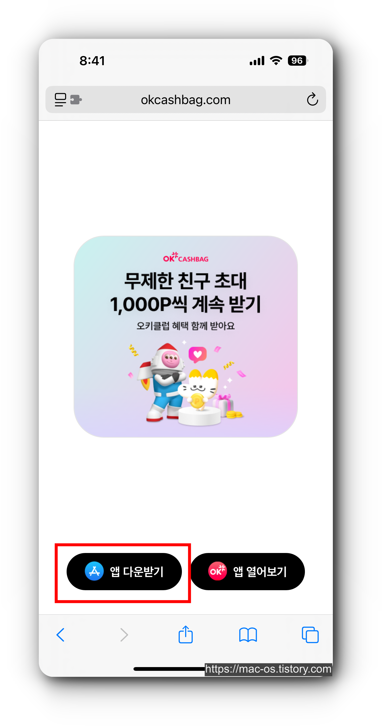 - [앱 다운받기] 버튼을 클릭하여 OK캐쉬백 설치