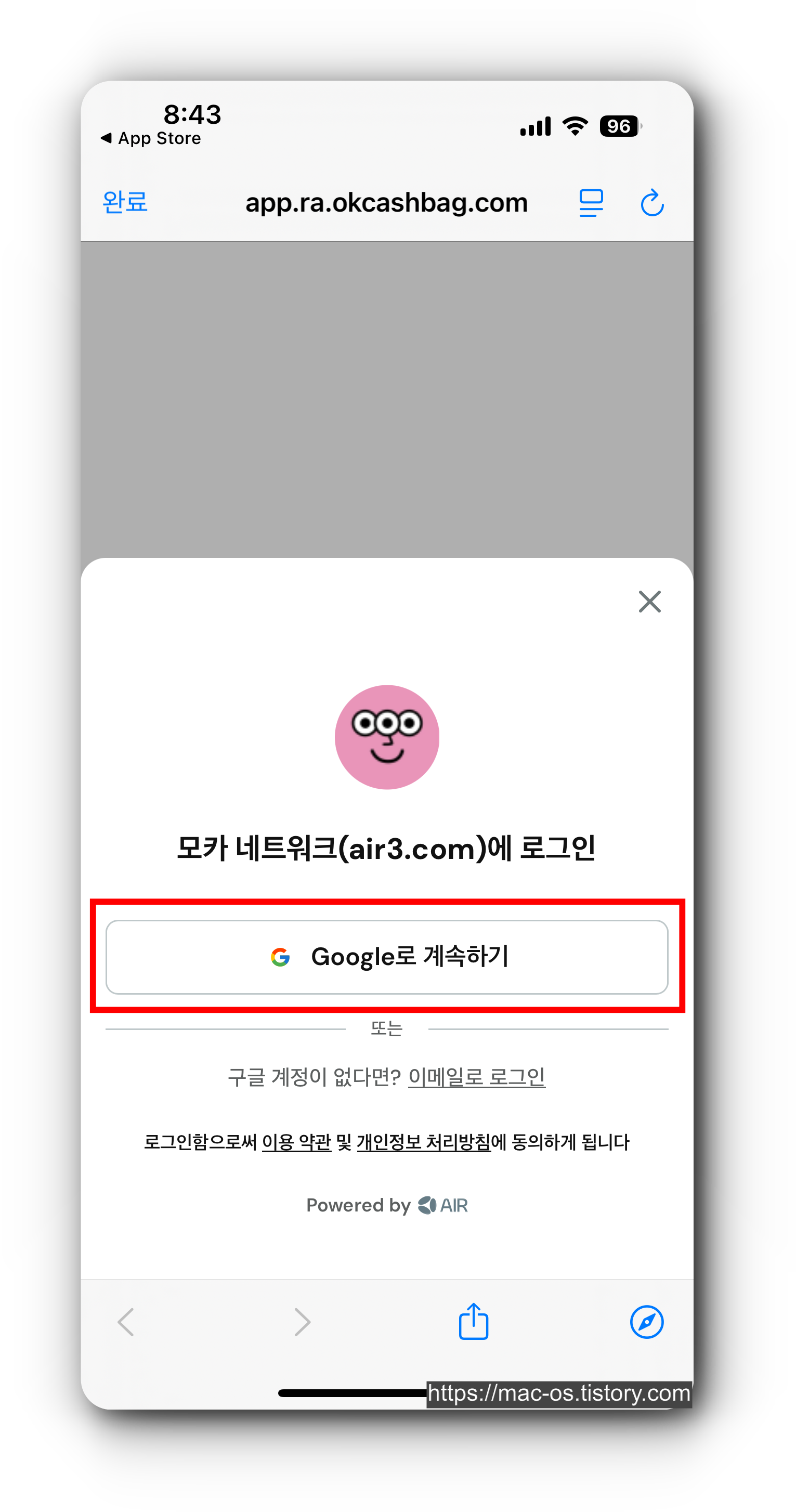 10. [Google로 계속하기] 버튼 터치
