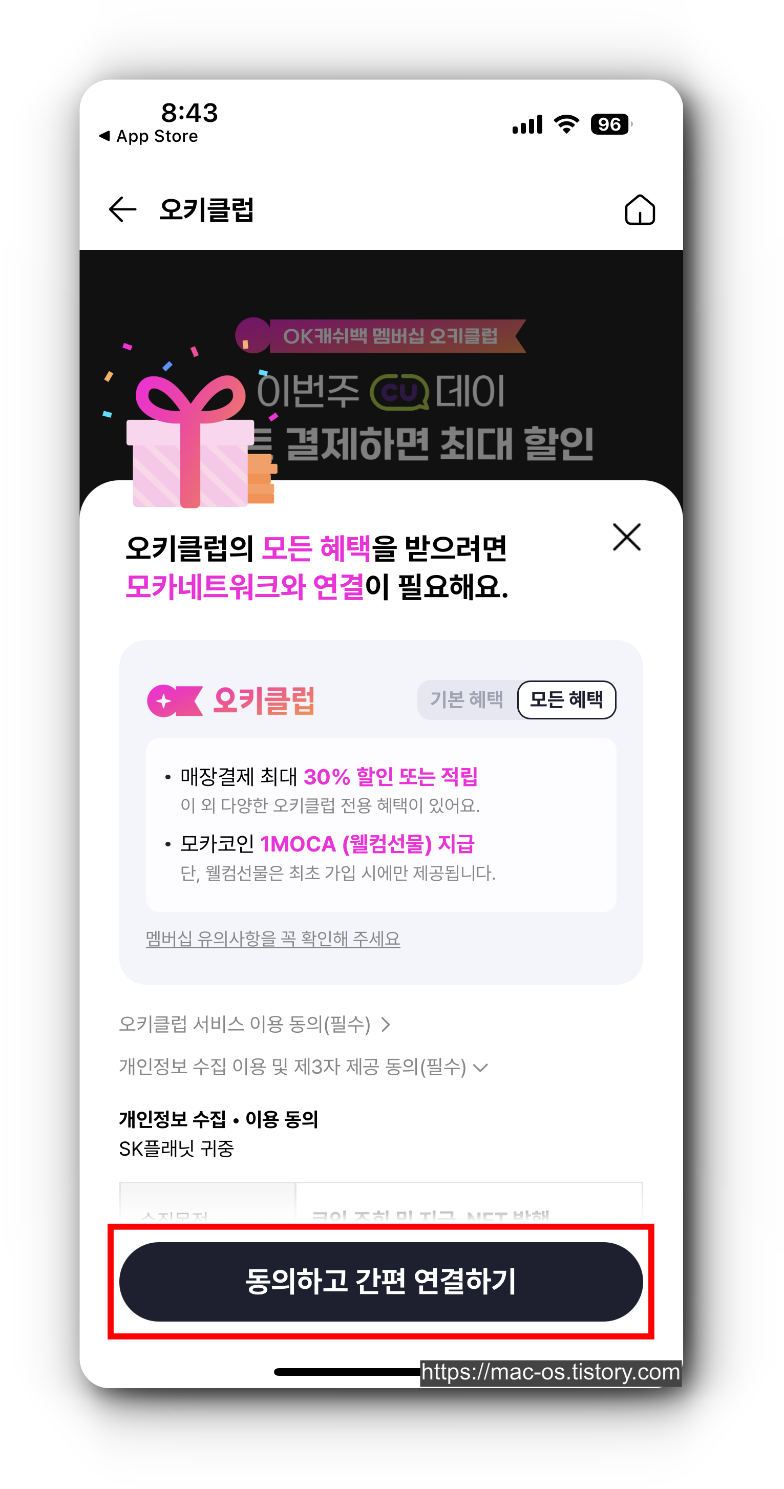 9. [동의하고 간편 연결하기] 버튼 터치