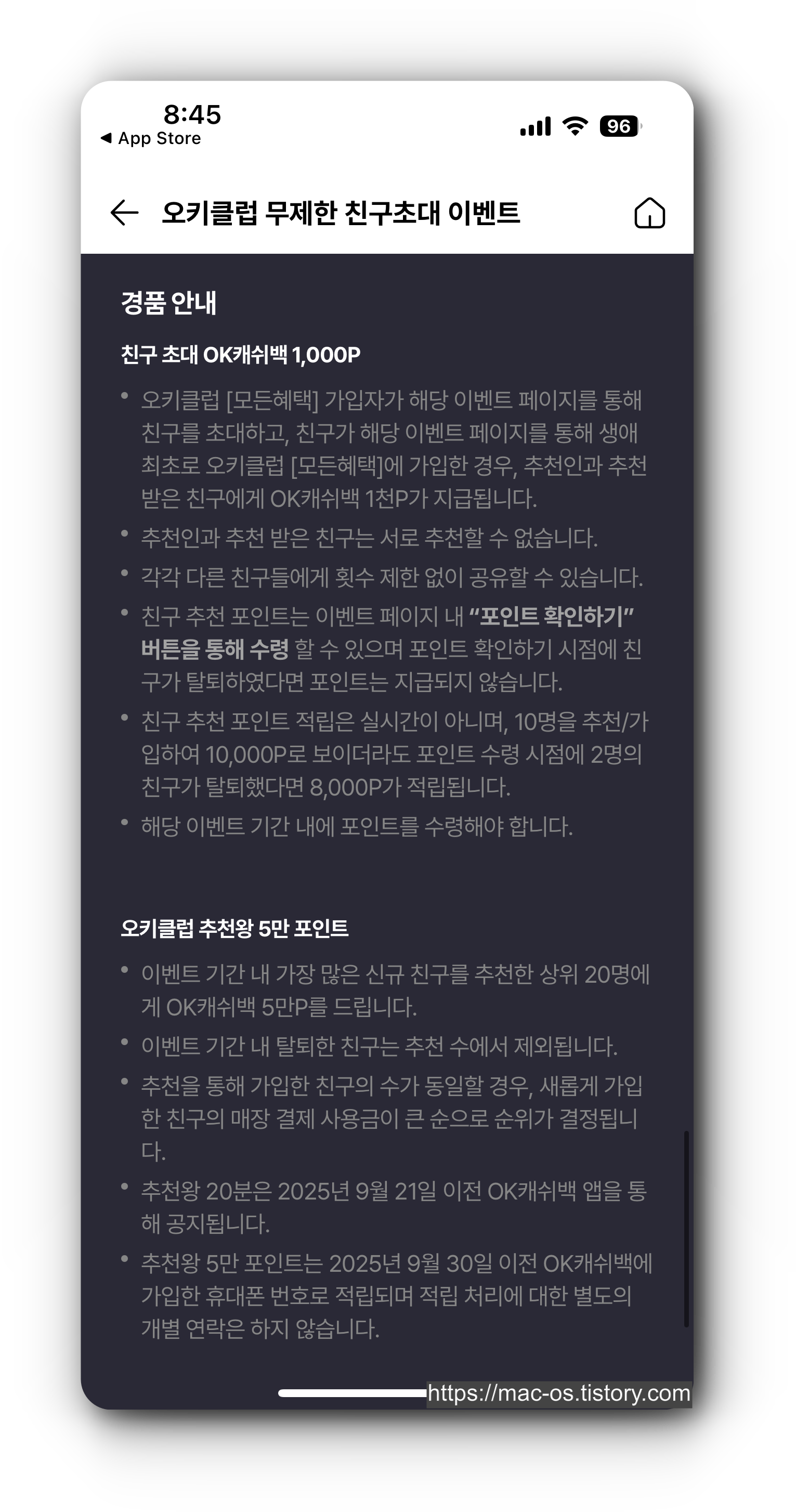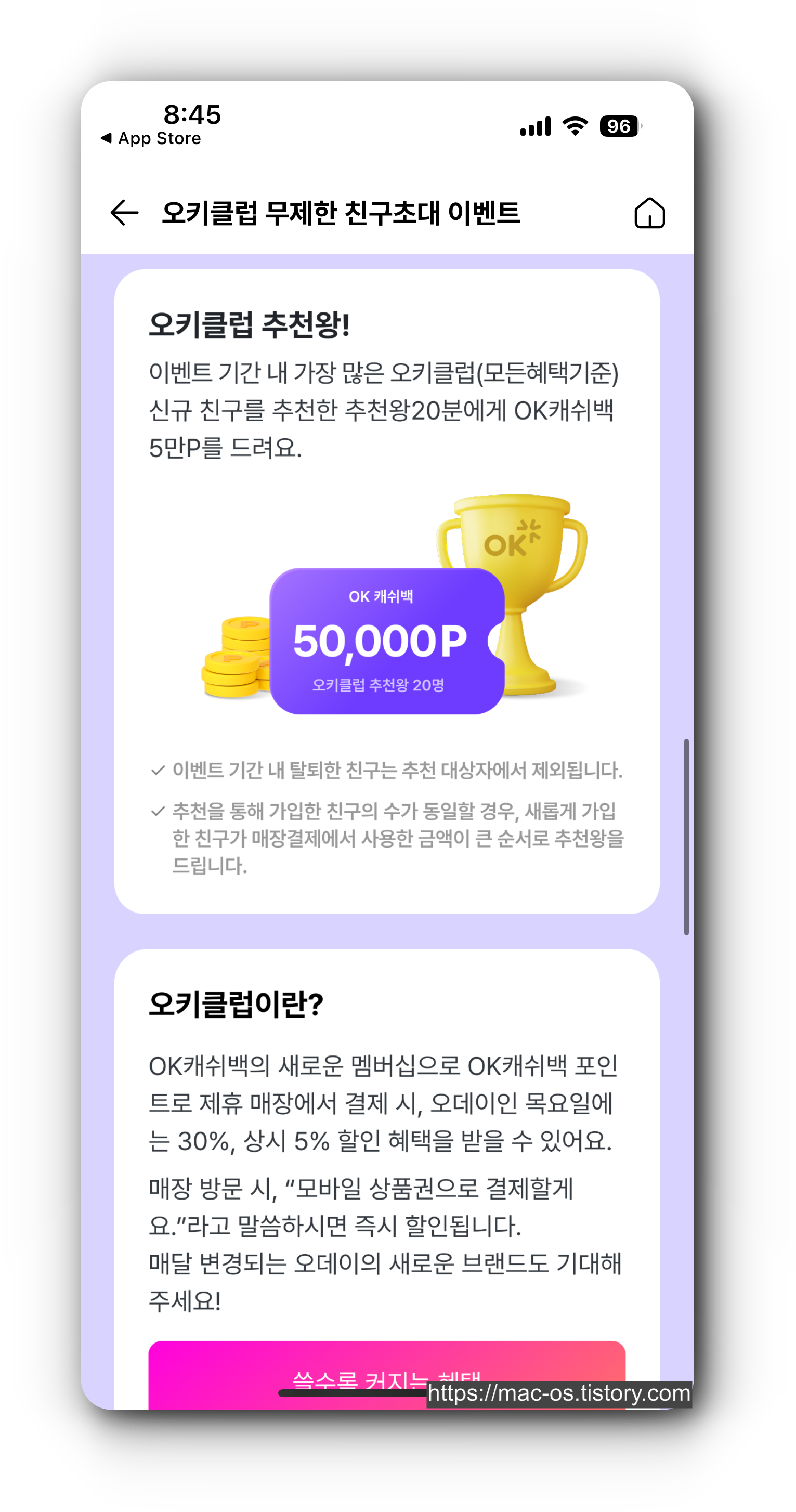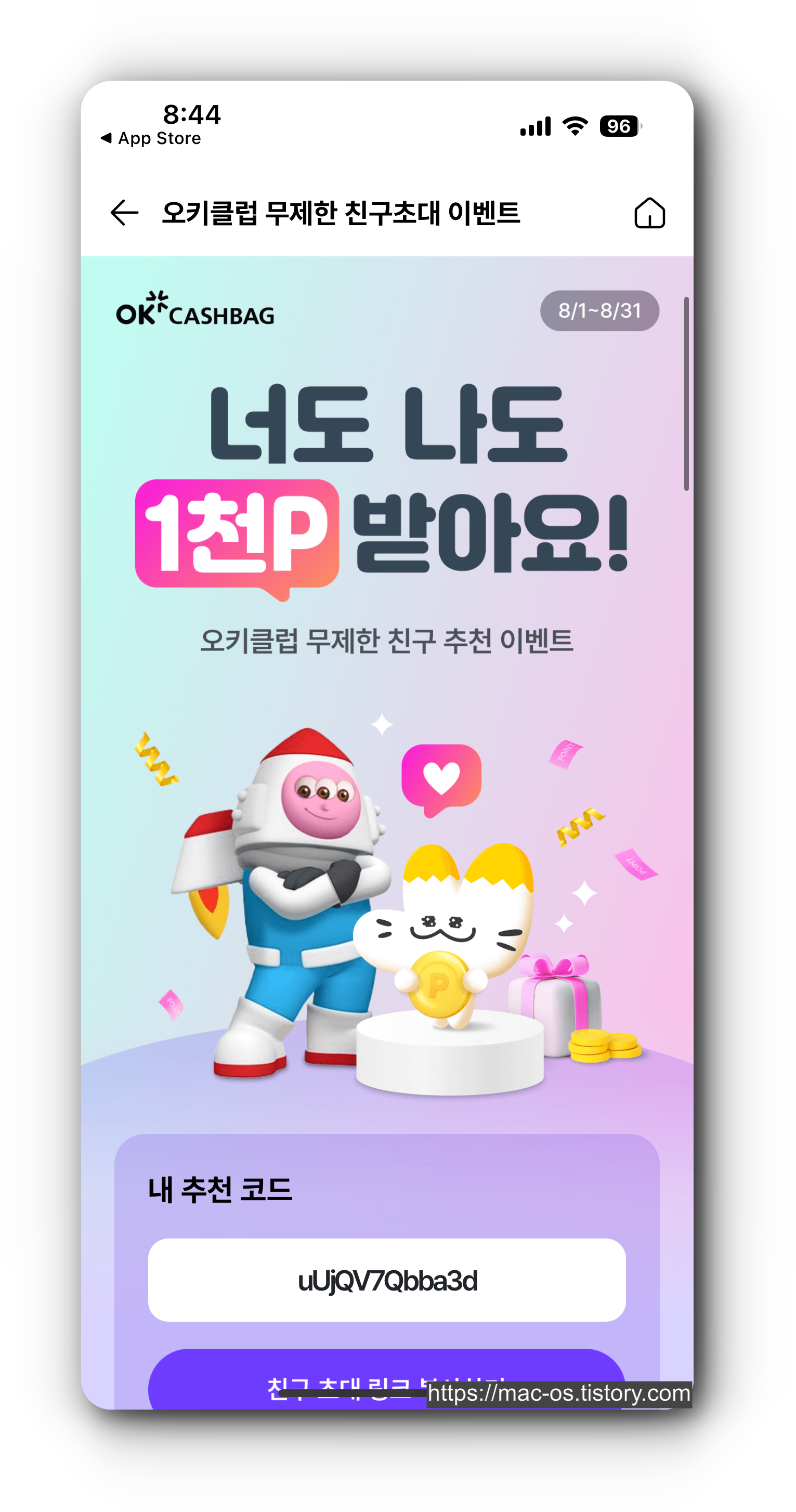 OK캐쉬백 친구초대 이벤트 참여 방법