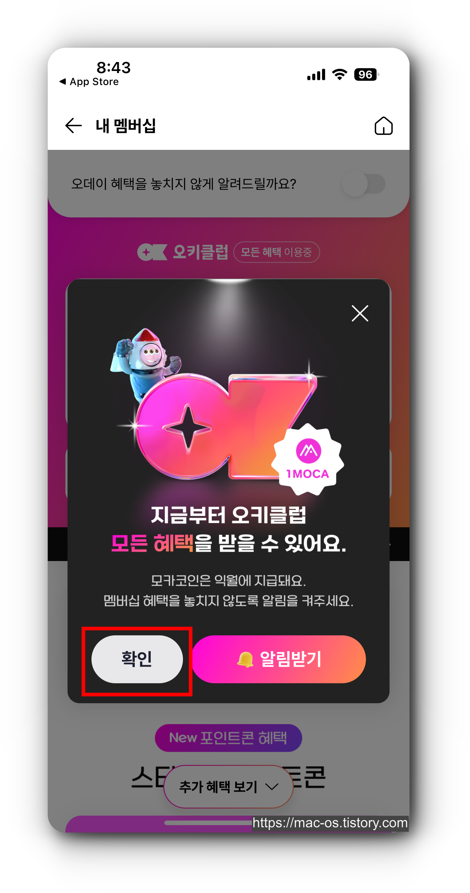 - 모카코인 1MOCA는 가입 후 익월에 자동 지급