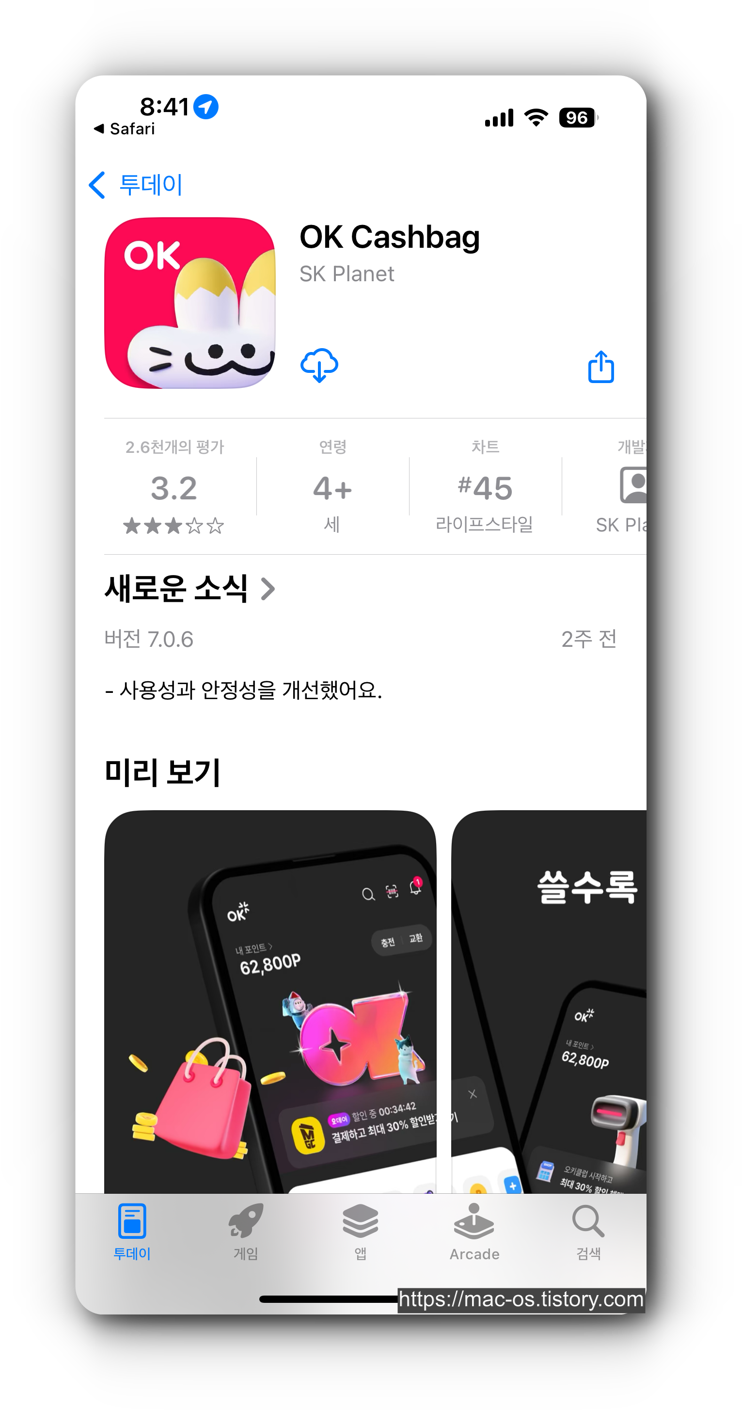 앱 이름 : OK캐쉬백