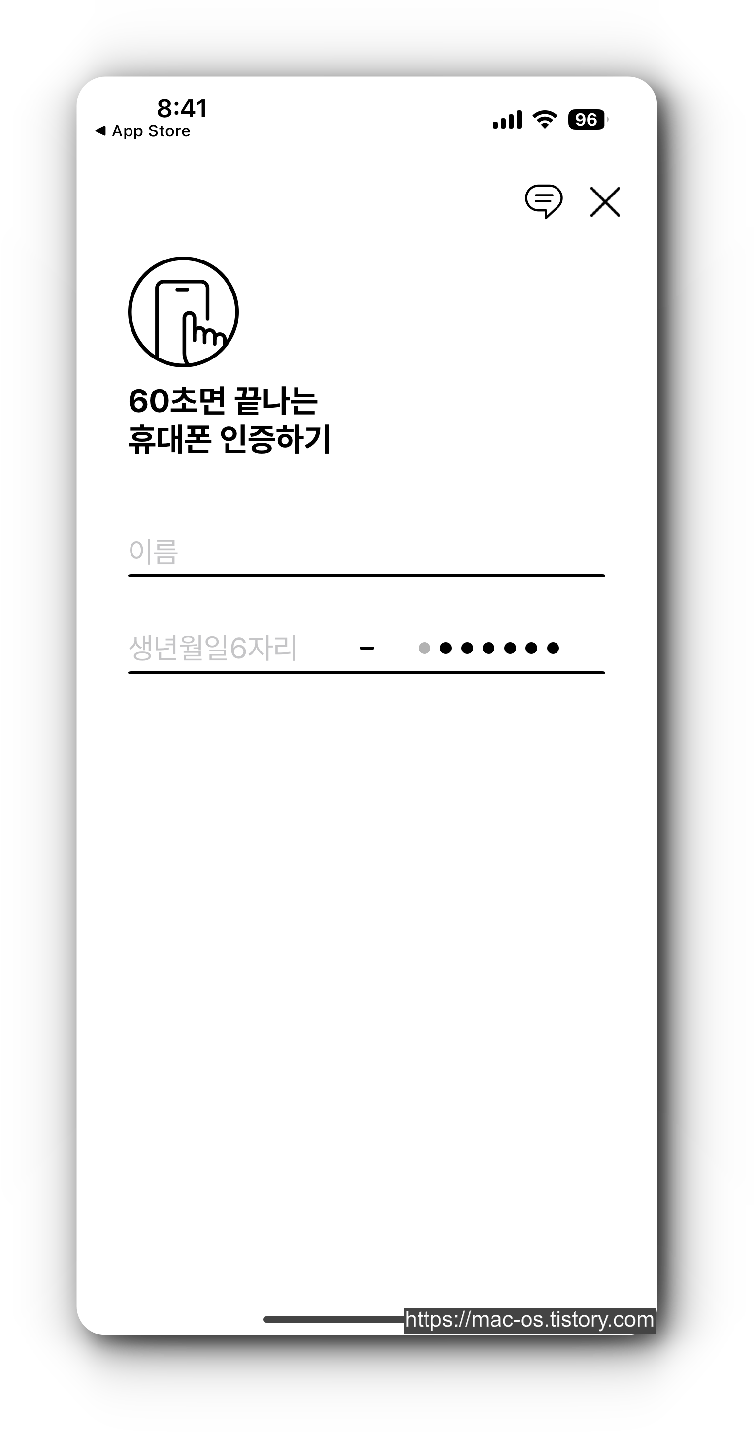 6. 이름, 생년월일, 휴대폰 번호 입력하여 문자 인증