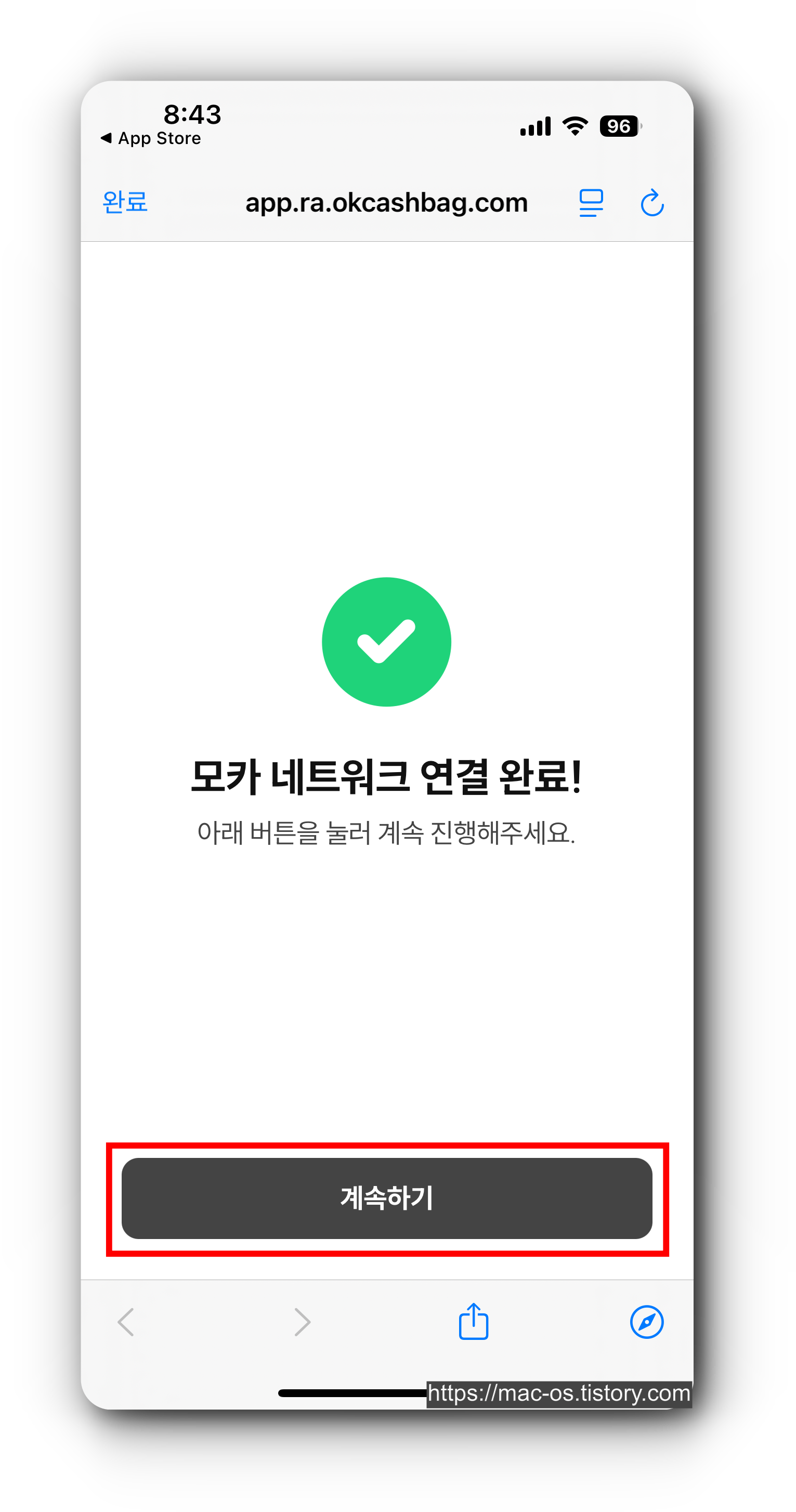 11. [계속하기] 버튼 터치