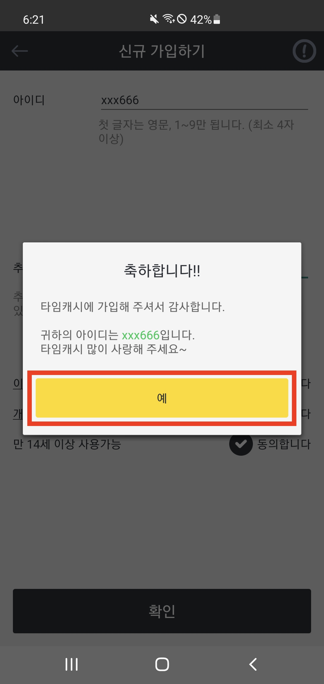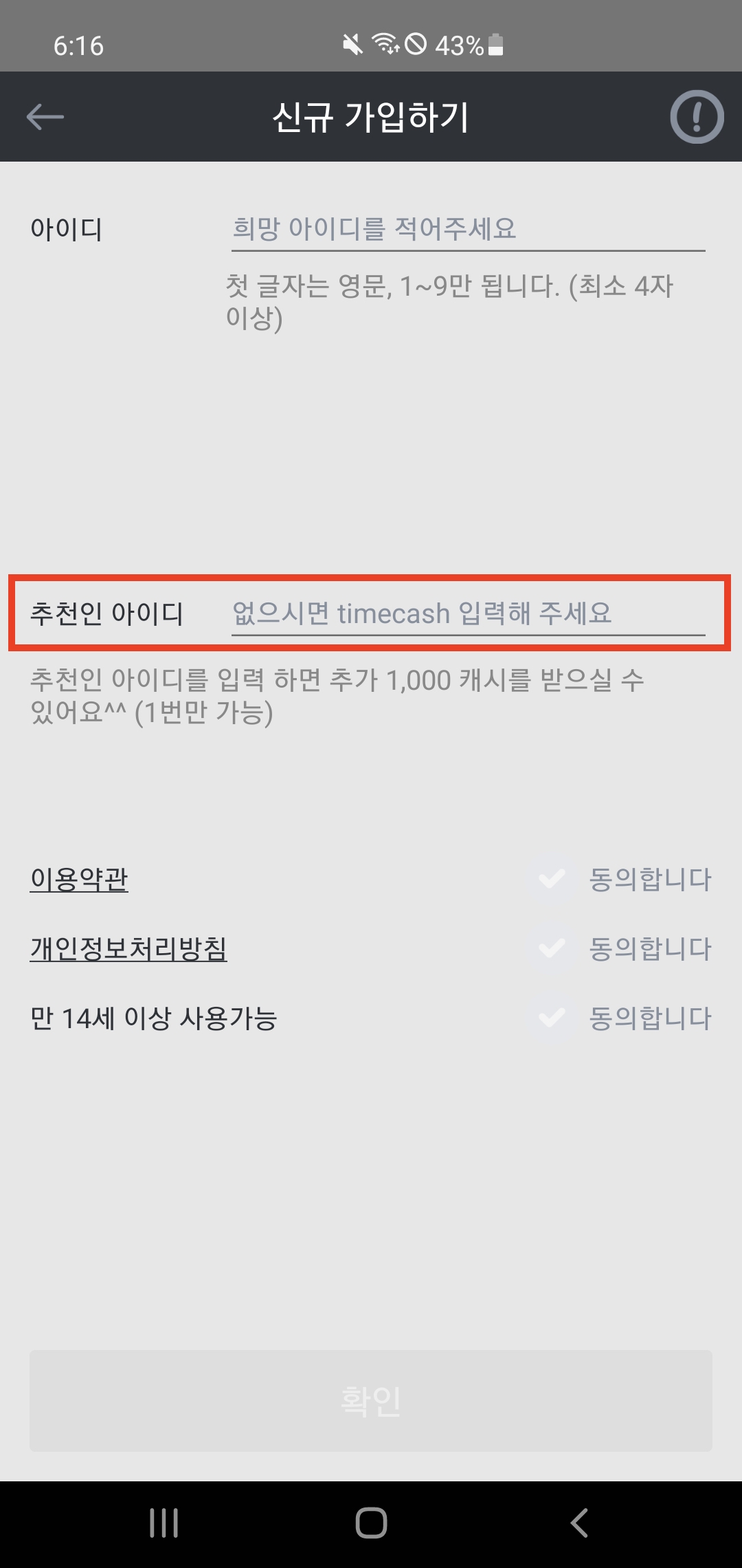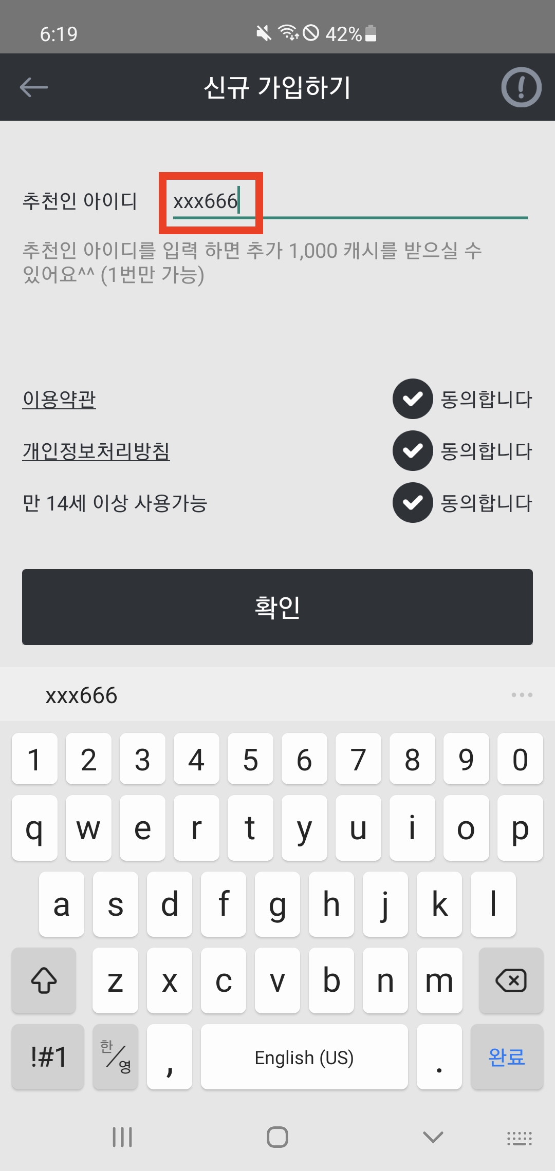 - 추천인 아이디 입력칸에 xxx666 등록하기