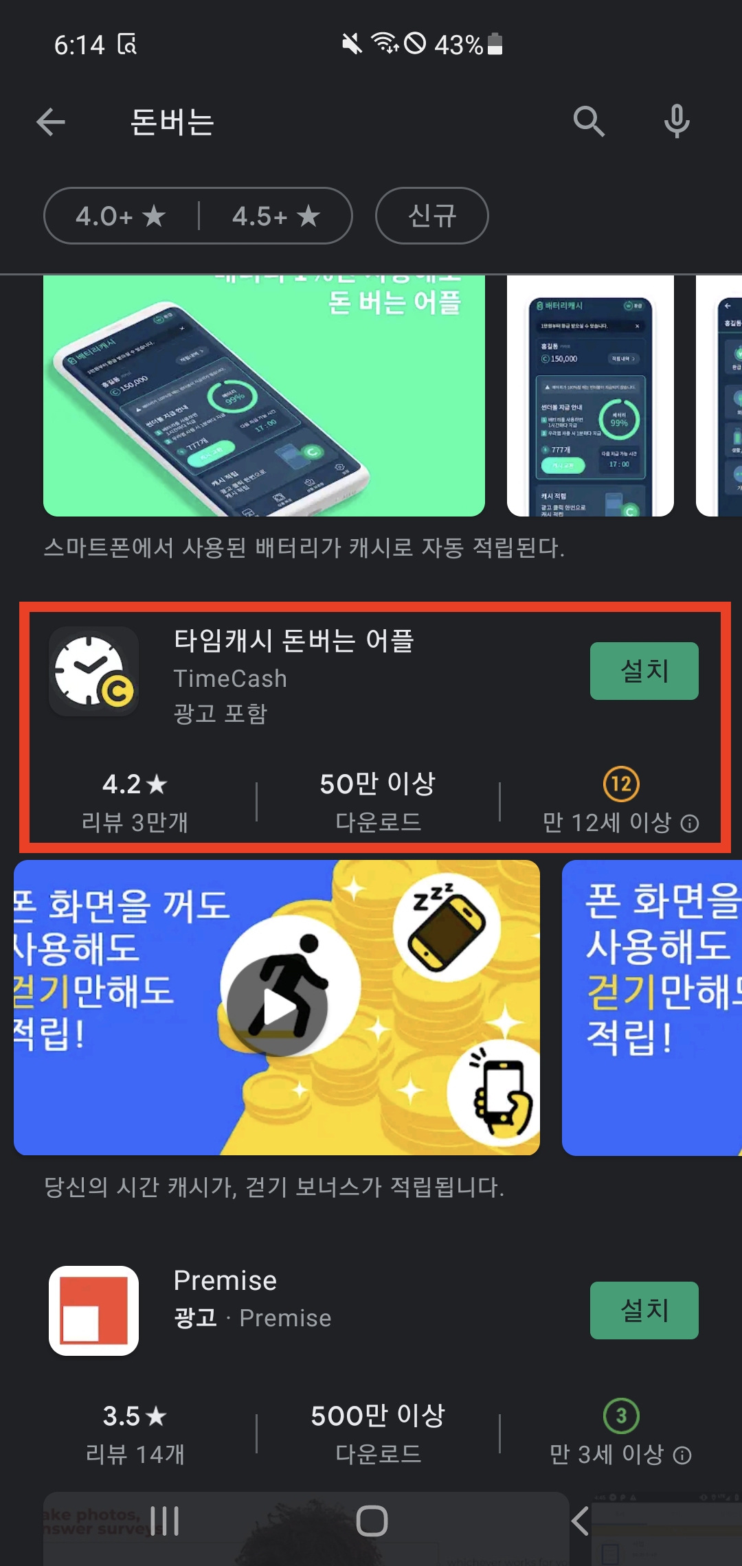 - 구글 Play 스토어에서 타임캐시 앱 설치하고 실행하기
