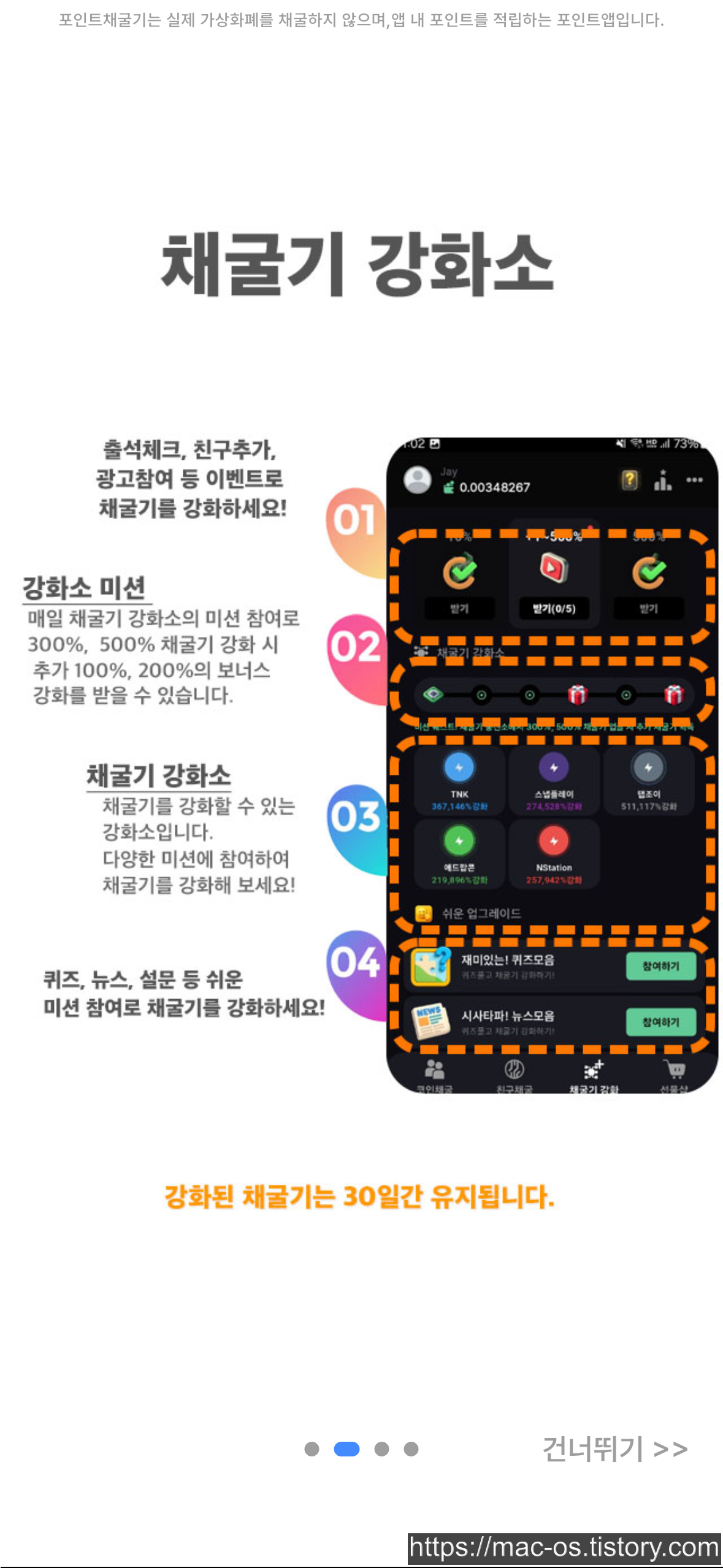 - 앱을 설치하고 앱을 종료하면 자동으로 포인트가 채굴됨