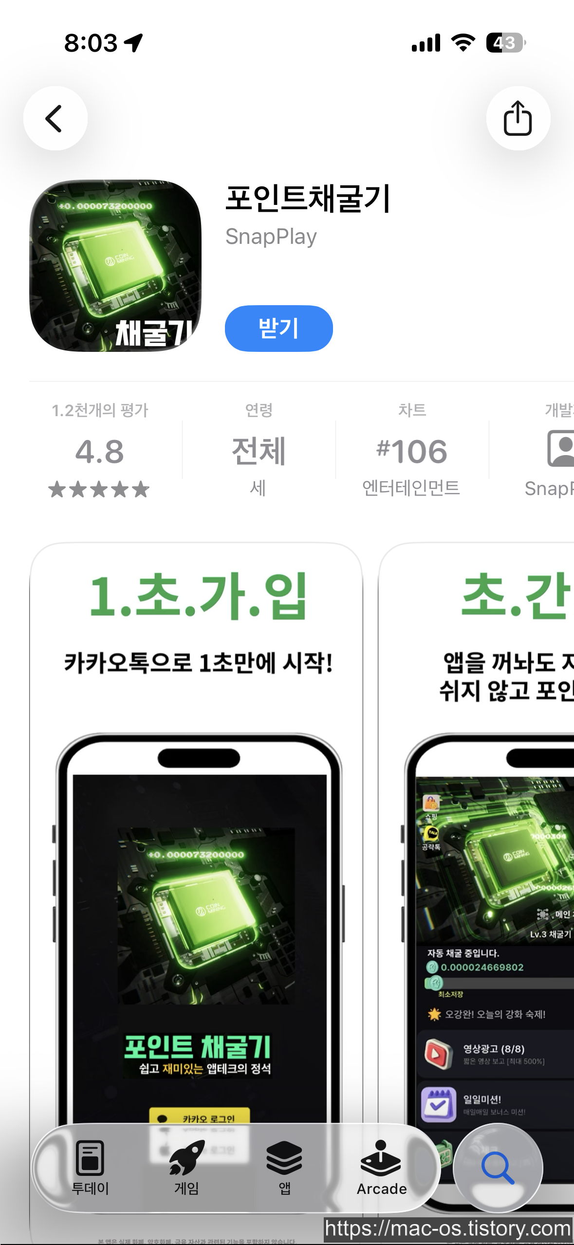 포인트채굴기는 앱스토어와 플레이 스토어에서 설치하여 카카오, 애플 계정으로 로그인할 수 있습니다.