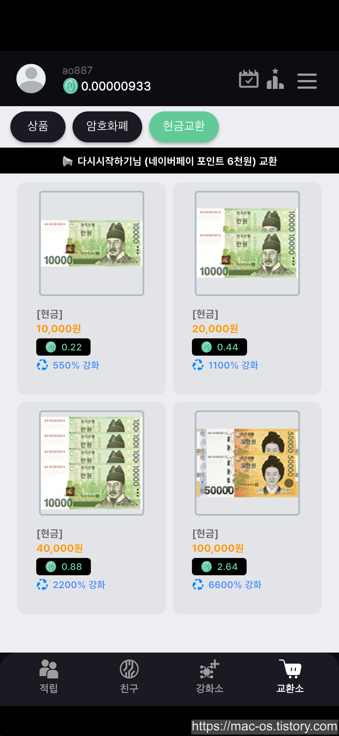 교환소에서 채굴한 포인트를 네이버페이 포인트, 구글 플레이 기프트 코드, 비트코인, 현금 등으로 교환하여 사용할 수 있습니다.