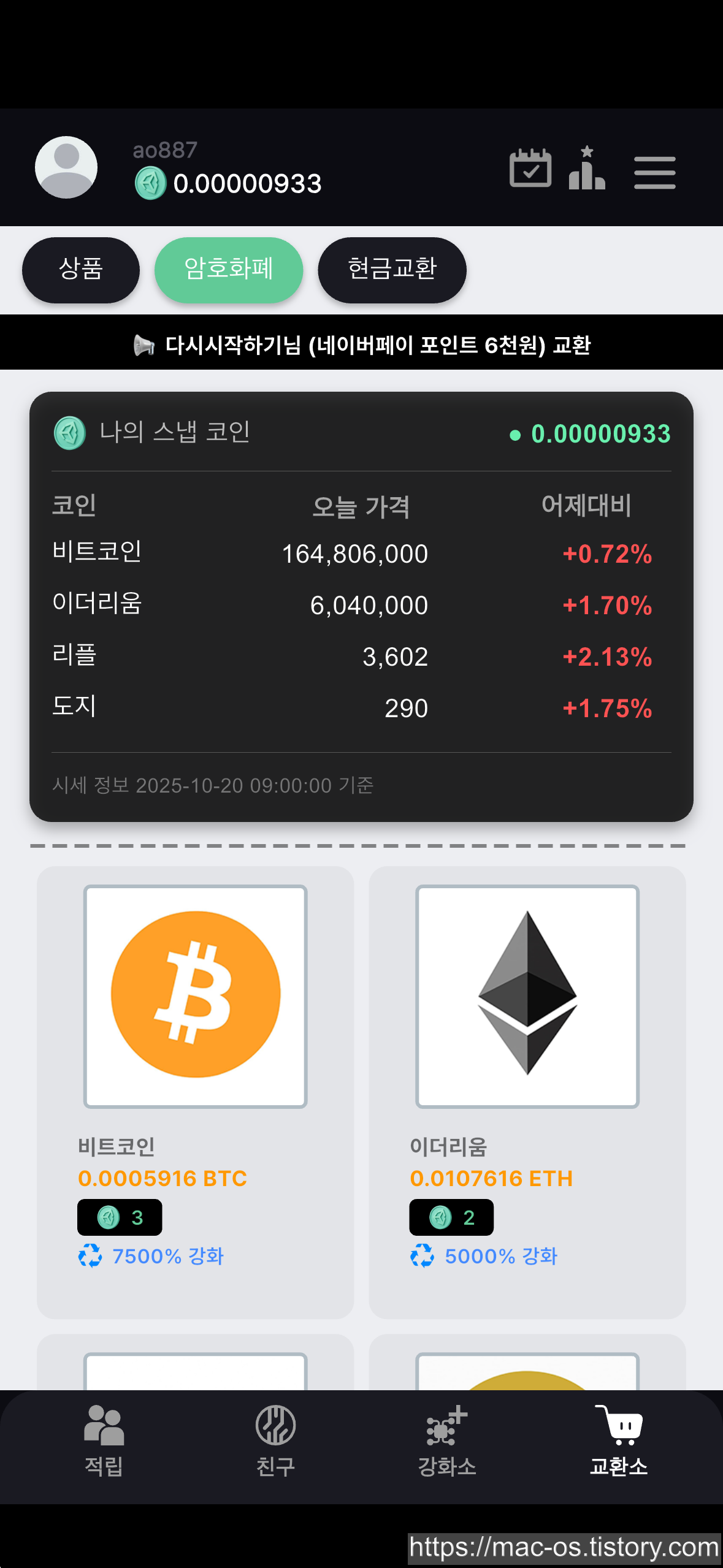 포인트채굴기 추천인 : XL2NLDOHR5 (복사 가능)