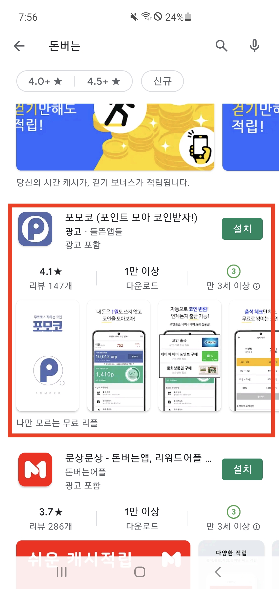 구글 Play 스토어에서 포모코를 검색하면 앱을 설치할 수 있다.