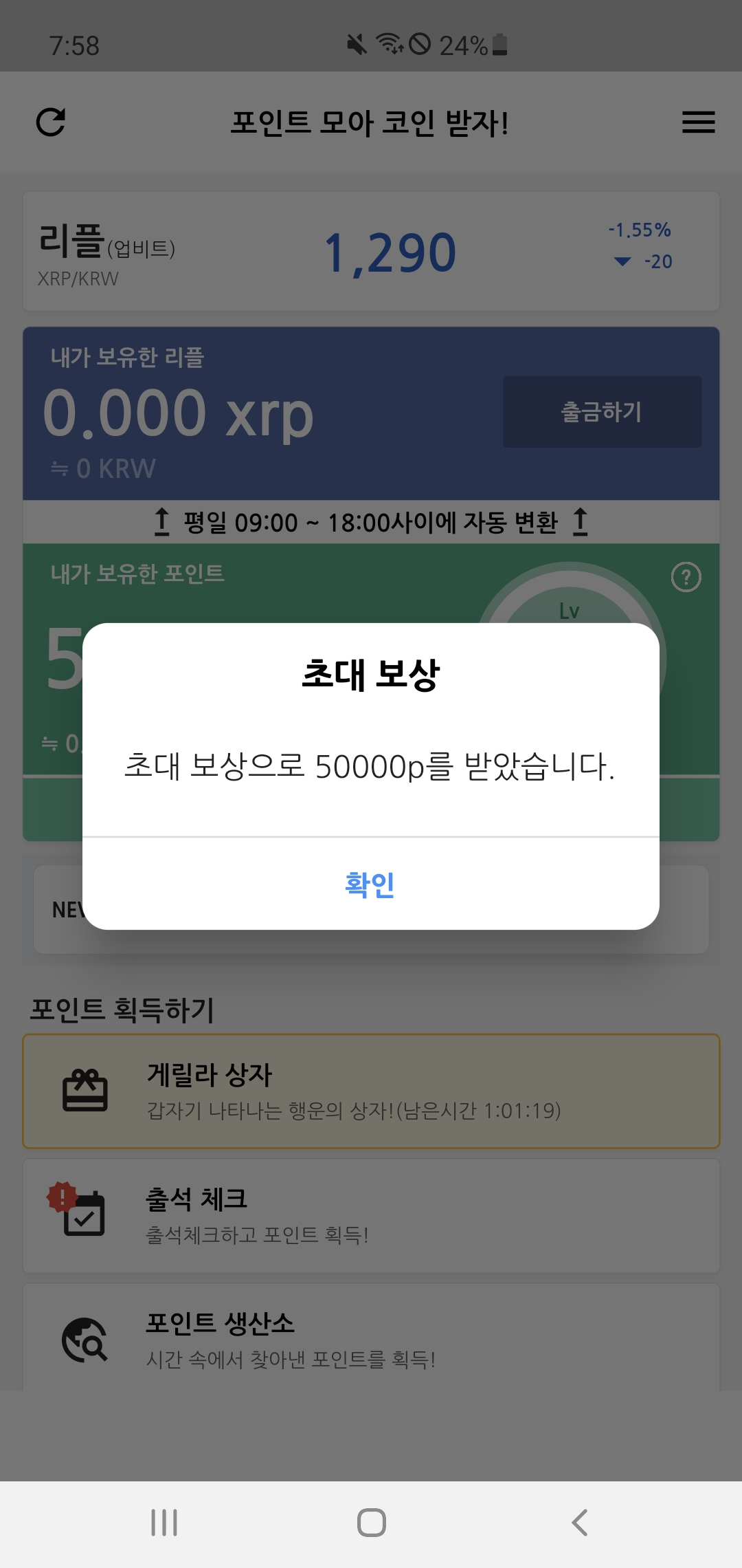 XRP를 얻기 위해서는 p(포인트)를 얻어야 하는데