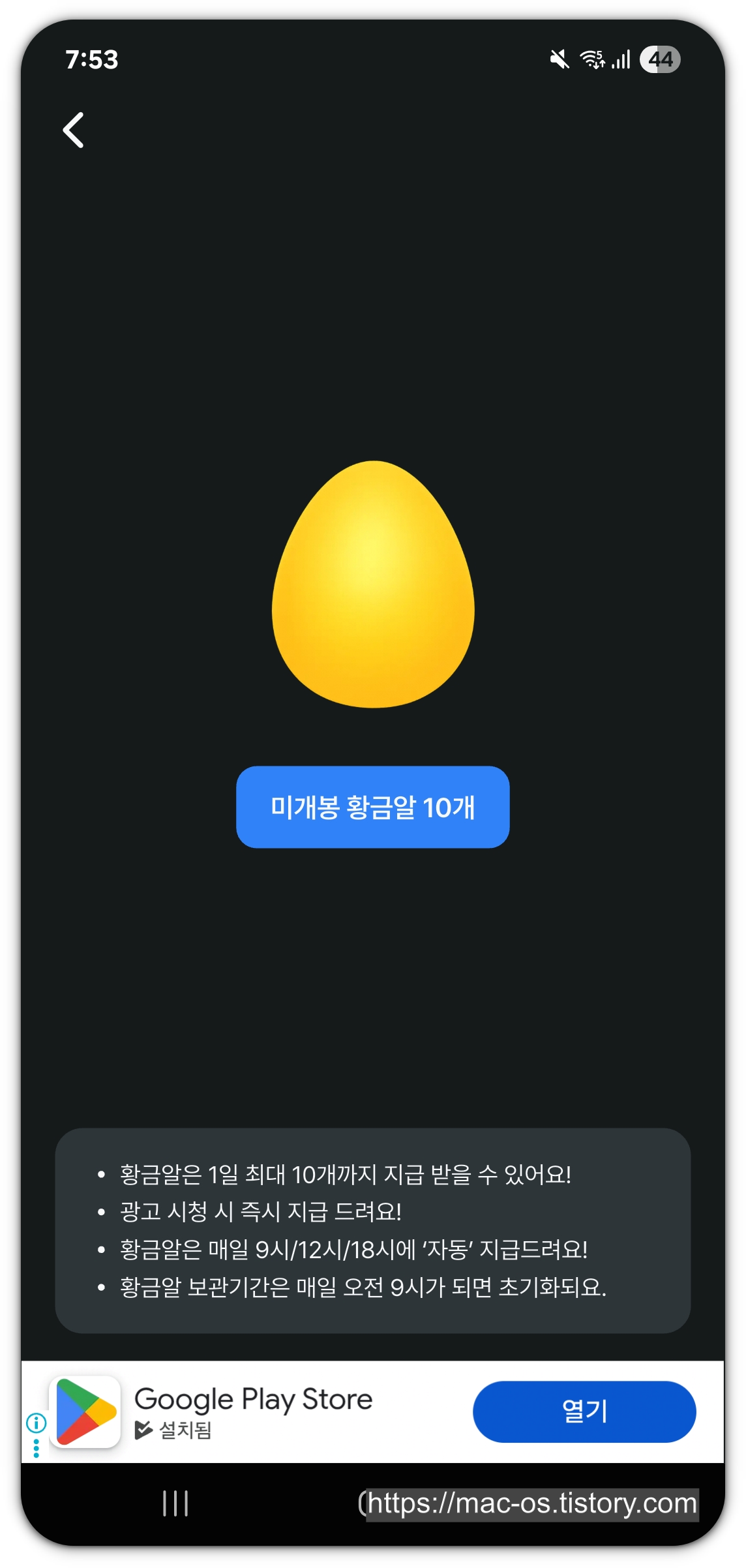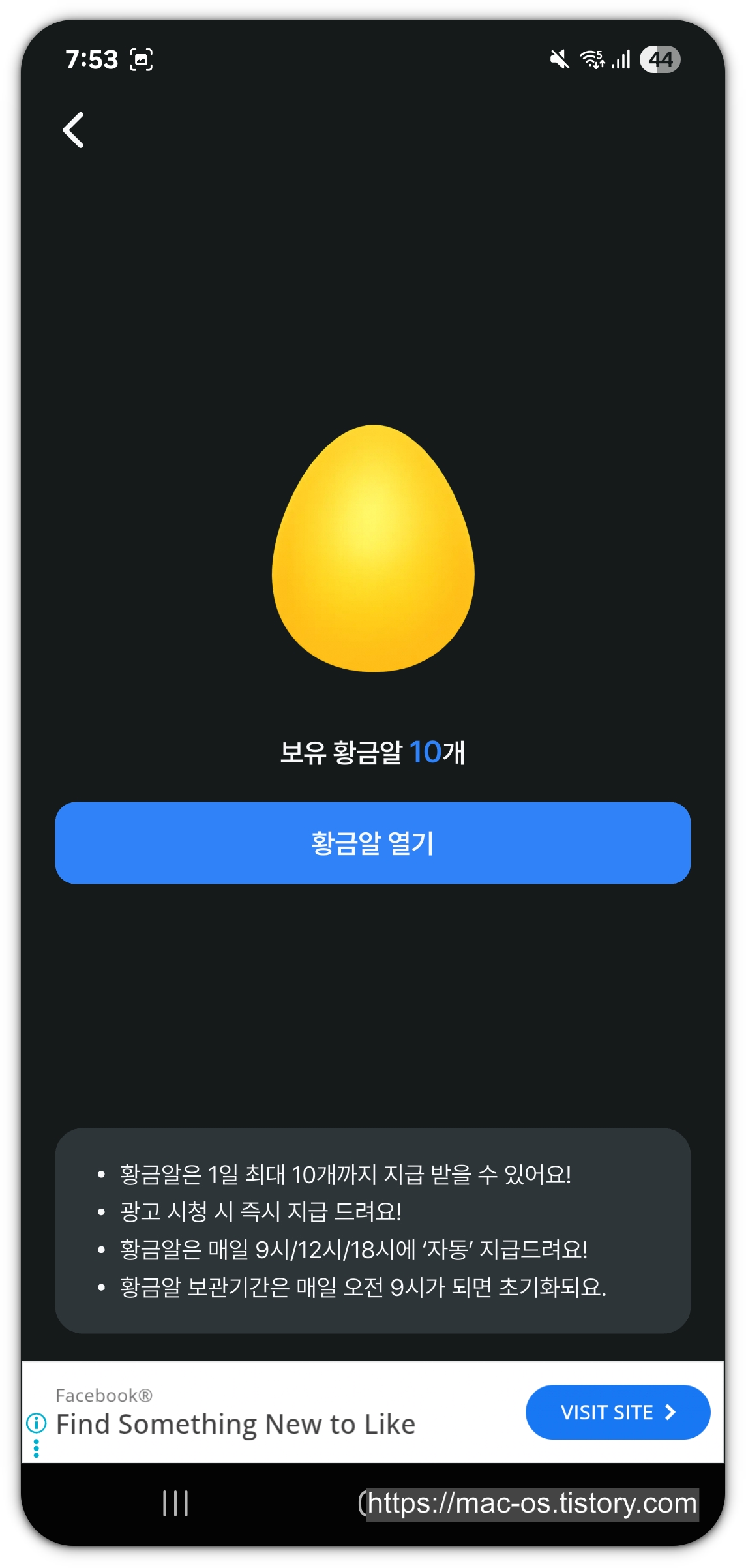 한번 황금알을 한번 깨보겠습니다. 황금알 페이지에서 황금알 열기 버튼을 누릅니다.