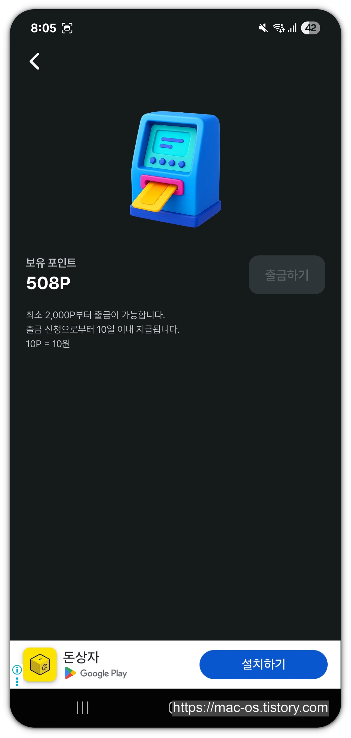 - 간편한 포인트 현금화: 추천인 등록 시 500포인트를 즉시 적립받을 수 있으며, 모은 포인트는 2,000포인트부터 1:1 비율로 현금 출금이 가능합니다.
