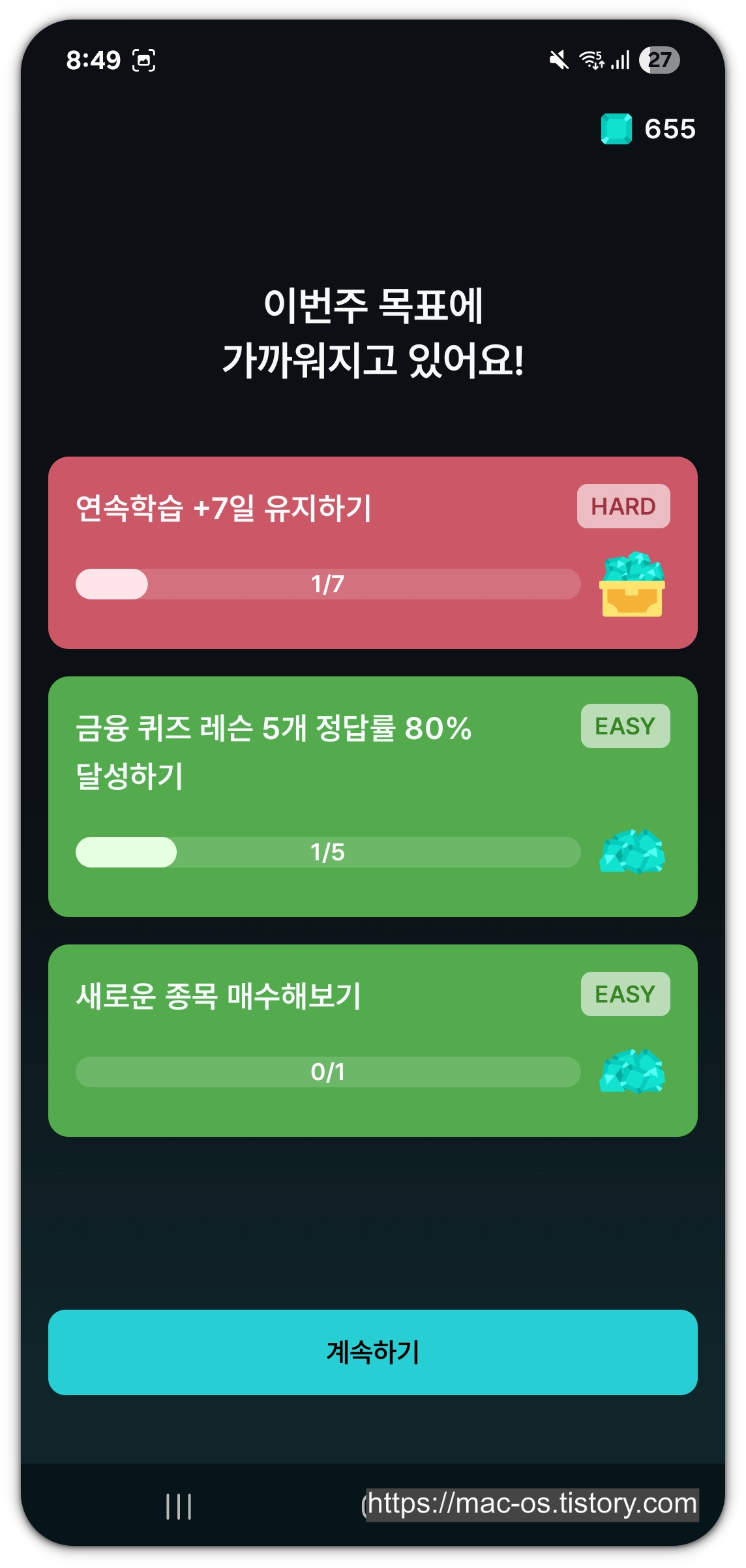 - 경제 퀴즈와 뉴스 학습: 매일 3회 제공되는 레슨과 경제 뉴스 퀴즈를 풀며 자연스럽게 경제 지식을 쌓고 포인트를 적립할 수 있습니다.