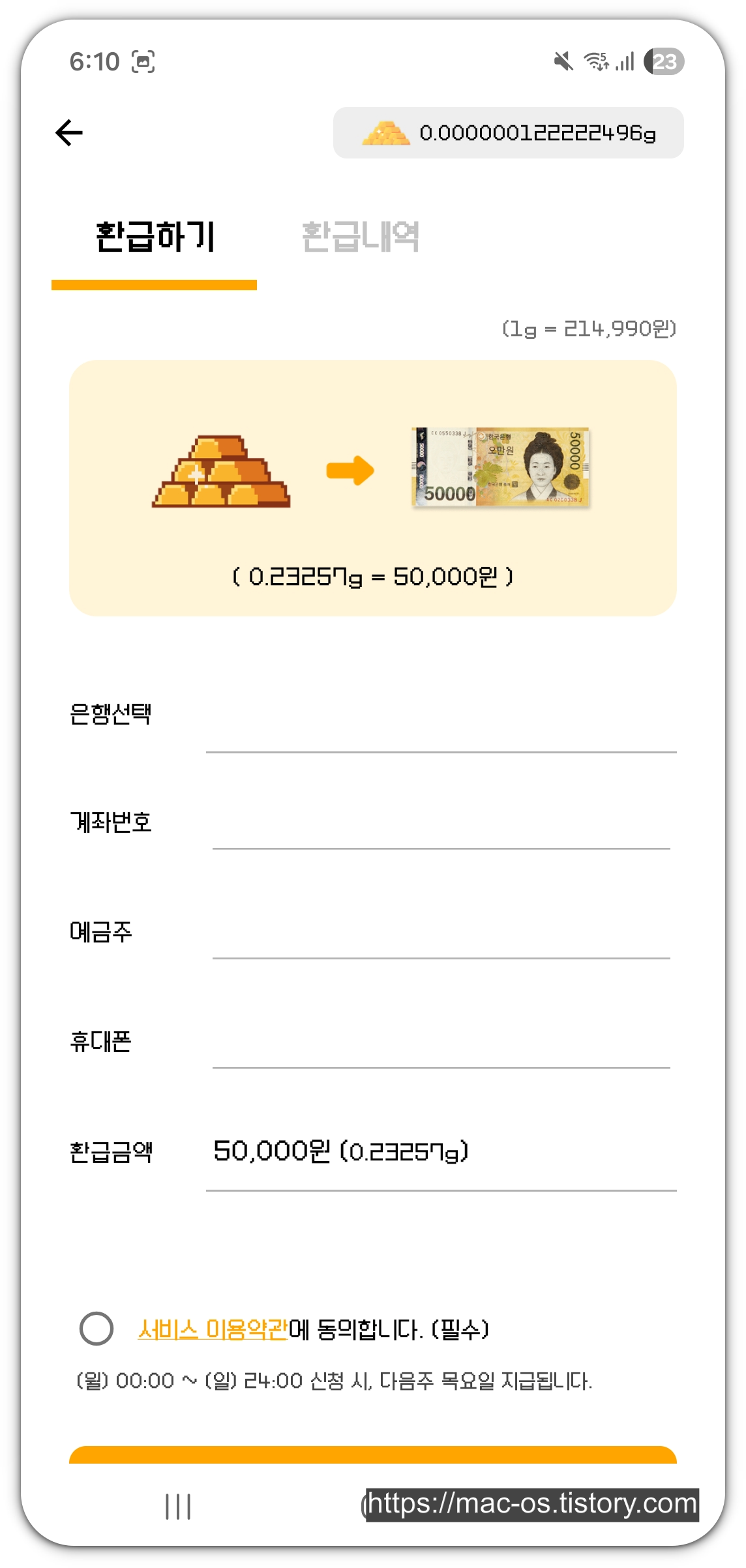 - 실질적인 현금 가치: 채굴한 금은 실제 시세(1g당 약 21.5만 원)를 반영하여 본인 명의 계좌 입금이나 기프티콘으로 즉시 교환이 가능합니다.