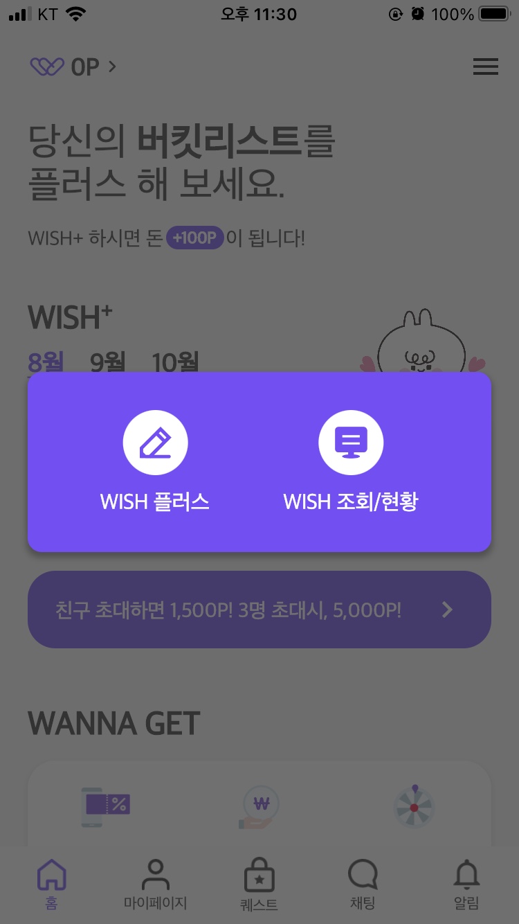 버킷리스트를 1회 작성할 때마다 100 워너포인트가 적립되므로, 하루에 200P, 한달에 최대 3,000P까지 적립이 가능합니다. 그리고 자신이 등록한 WISH를 조회하거나 현황을 확인하실 수도 있습니다. 홈 화면에서 모바일 상품권과 캐시백, 출석 룰렛이라는 기능을 확인하실 수 있는데 차례대로 살펴보도록 하겠습니다.
