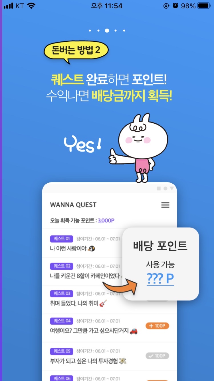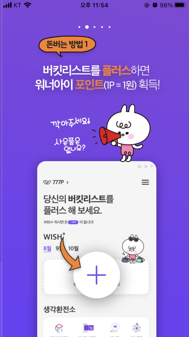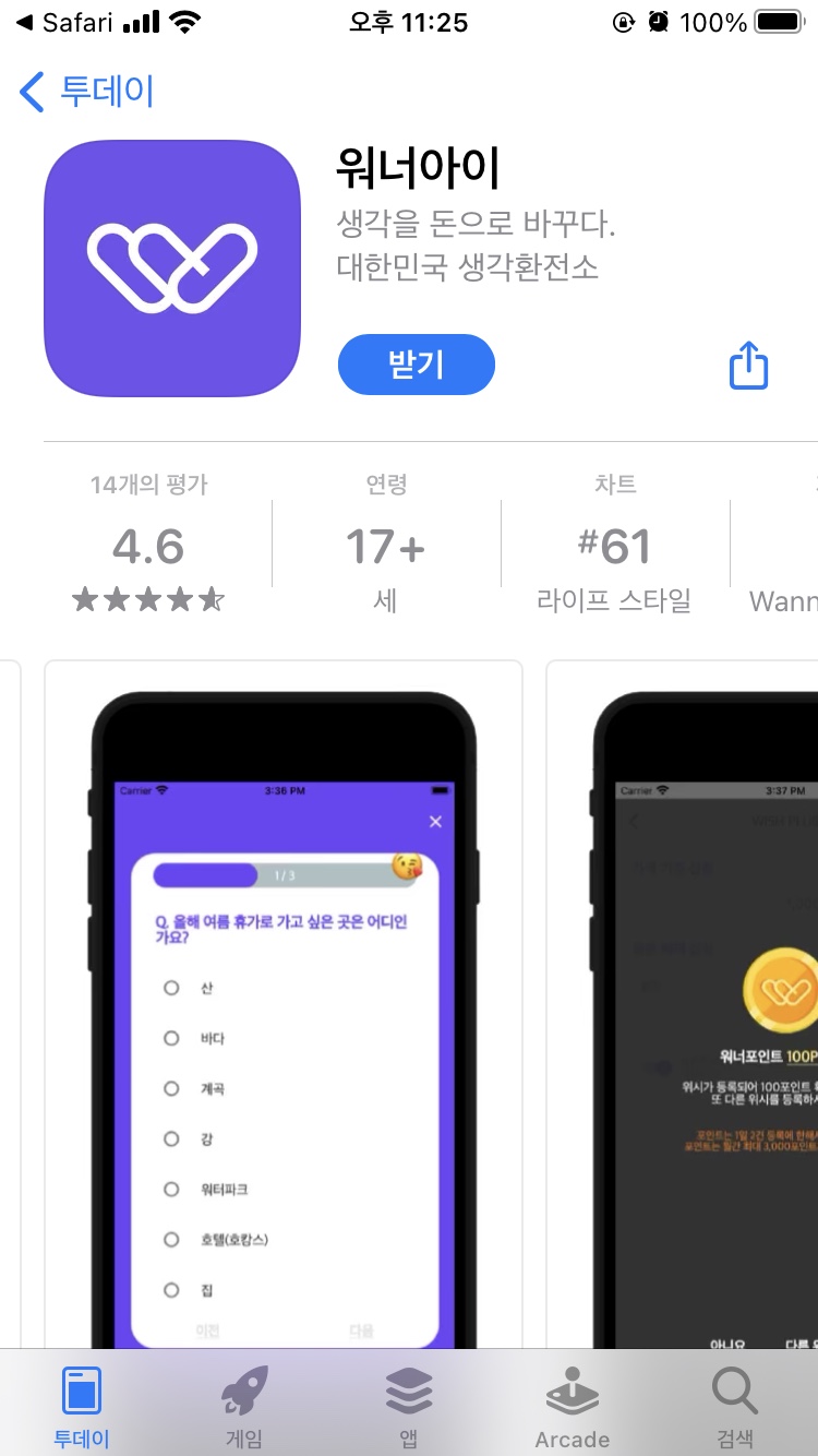 안녕하세요. 이번 글에서는 다날에서 출시한 앱, 돈버는 어플 워너아이에 대해 소개해드리겠습니다. 워너아이 앱스토어 소개에 따르면, 워너아이는 버킷리스트를 등록만 해도 포인트를 획득할 수 있다고 합니다.