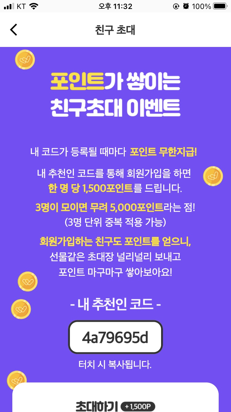 세 번째 이벤트는 워너아이 친구초대 이벤트입니다. 현재 친구를 한 명 초대할 때마다 1,500P를 지급하는데 3명을 초대하게 되면 4,500P가 아닌 5,000P를 지급해 준다는 내용입니다.
