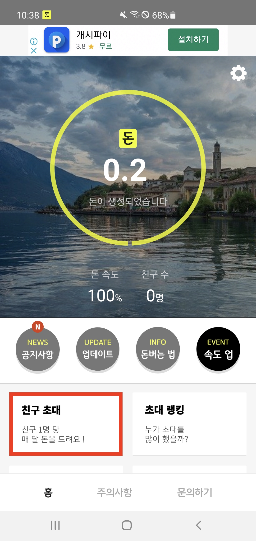 3번째 사진처럼 돈쌓여 앱 홈 화면에서 '친구 초대'를 터치해준다.