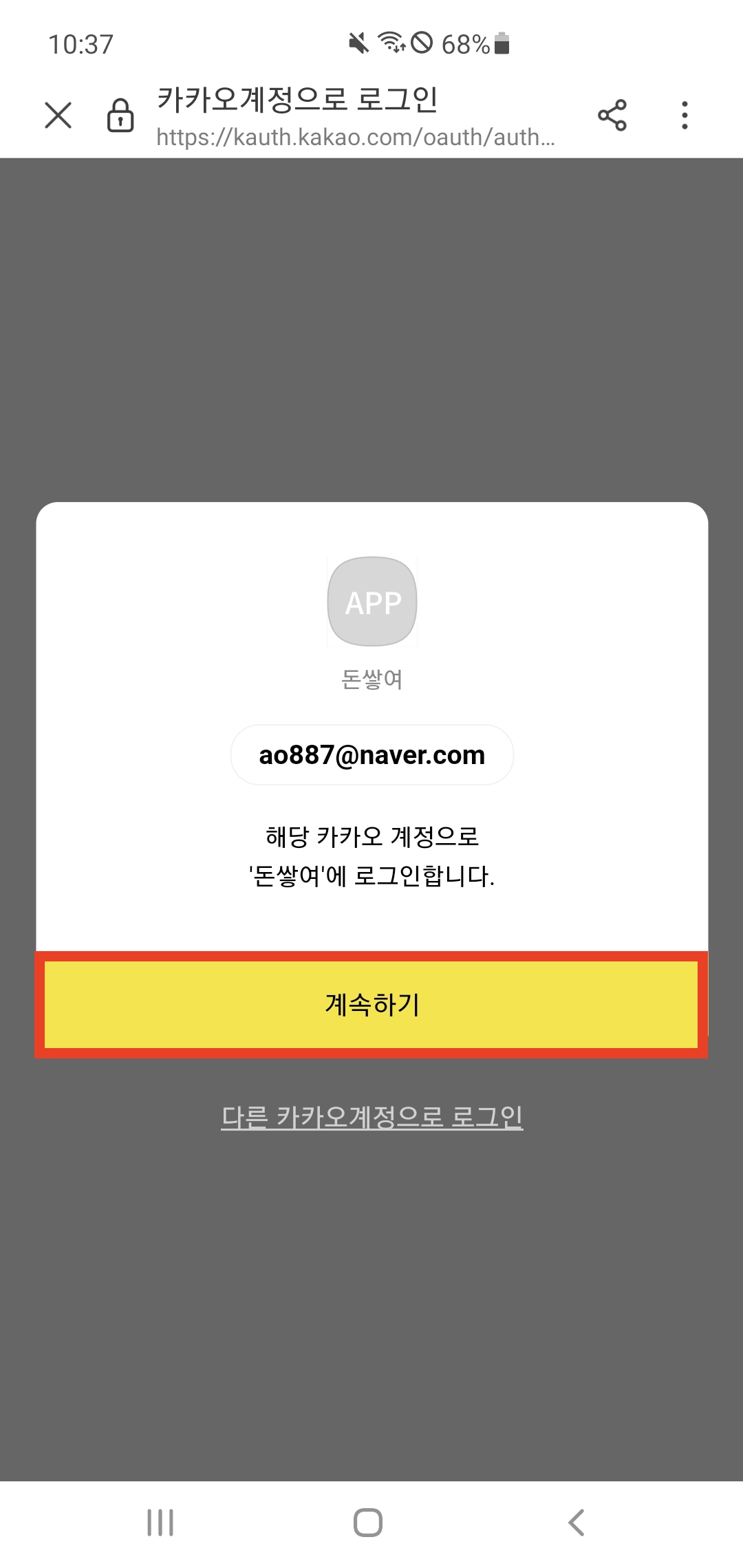 돈쌓여 앱을 설치한다. 그리고 권한을 허용해준 다음, 카카오 로그인을 클릭하면 된다.