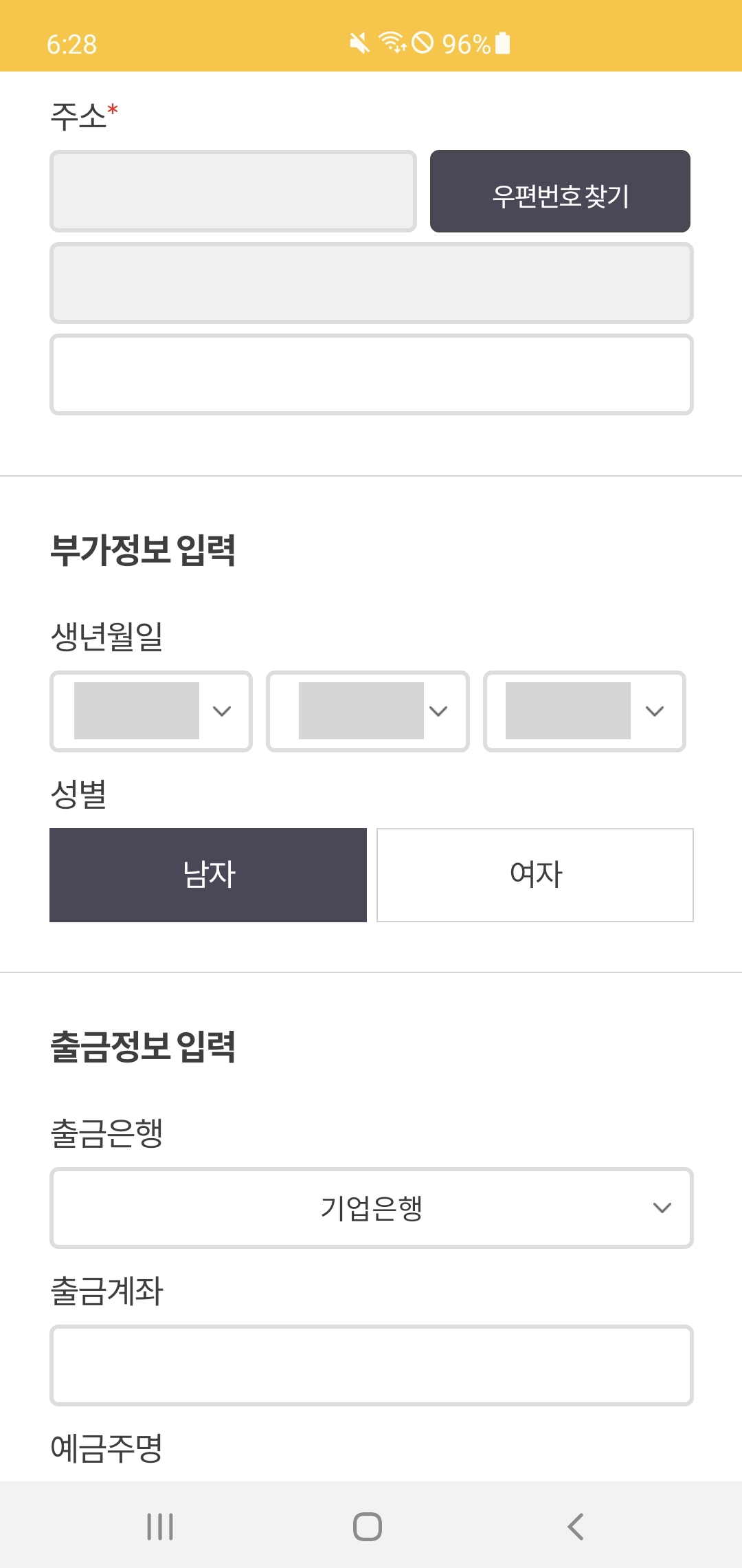 본인 명의로 휴대폰 인증을 마치면 회원정보 입력 페이지로 이동한다.