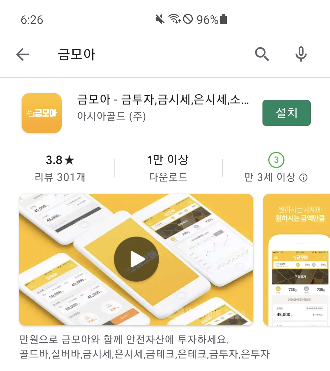 금모아는 (주)아시아 골드에서 개발된 소액 금, 은 투자 어플이다. 아시아 골드는 소매 매출만으로 연 300억 이상이며 KRX 금시장 회원사, 한국 조폐공사 지정판매 업체, 홀마크 감정소 인증 업체이다. 믿고 구매해도 좋다.