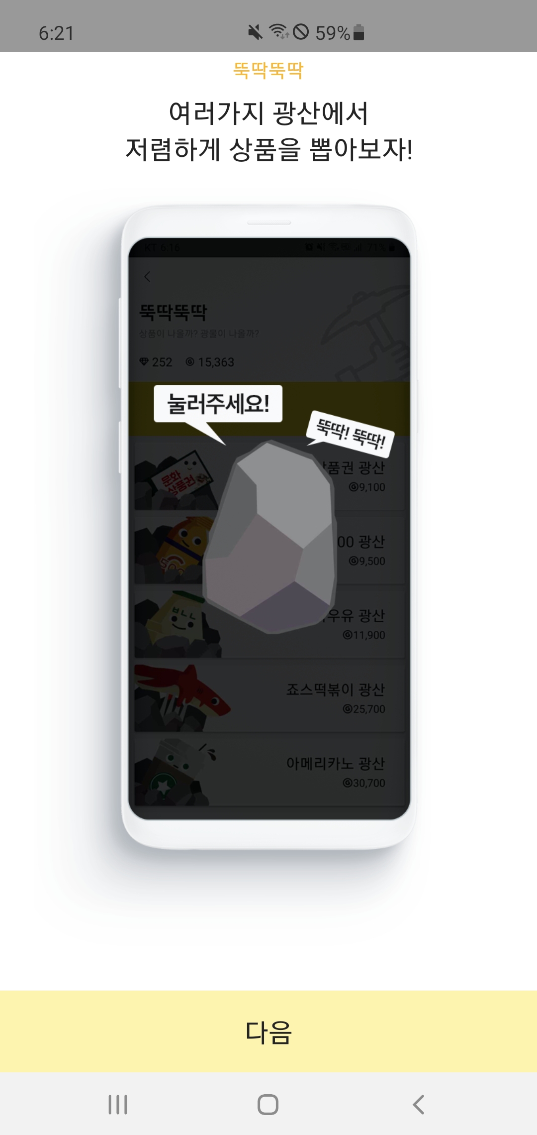 랭킹전에 참여해서 순위권에 들면 일확천금의 기회까지 제공된다. 여러가지 광산에서 문화상품권이나 죠스떡볶이 기프티콘, 아메리카노 등 저렴하게 상품을 뽑을 수 있다.