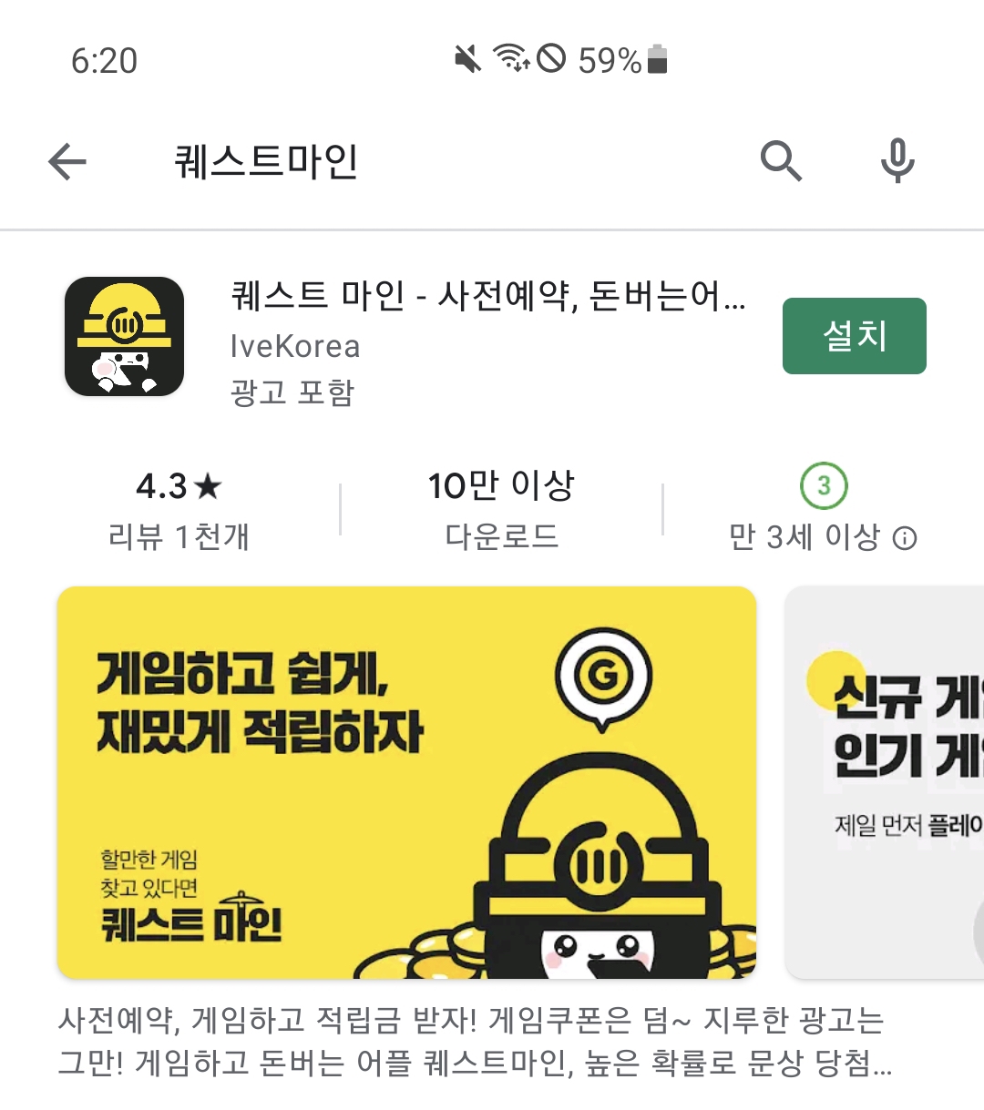 플레이 스토어에서 퀘스트마인 앱을 설치하고 실행한다.