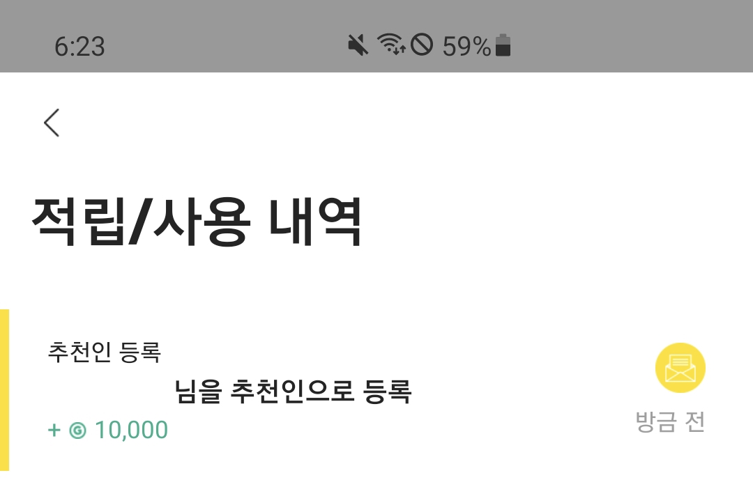 가입할 때 추천인을 등록해서 10,000골드가 지급된 사진이다.