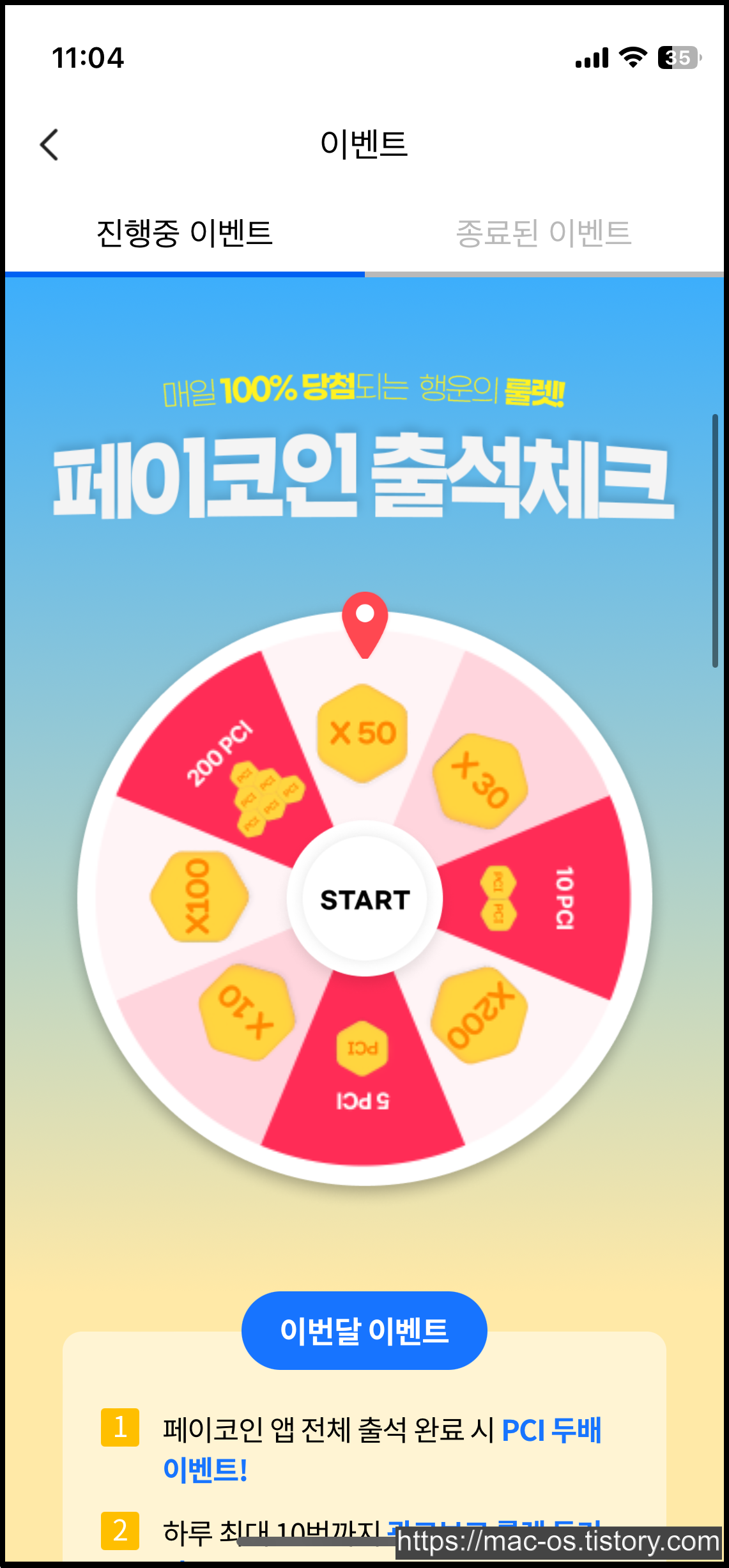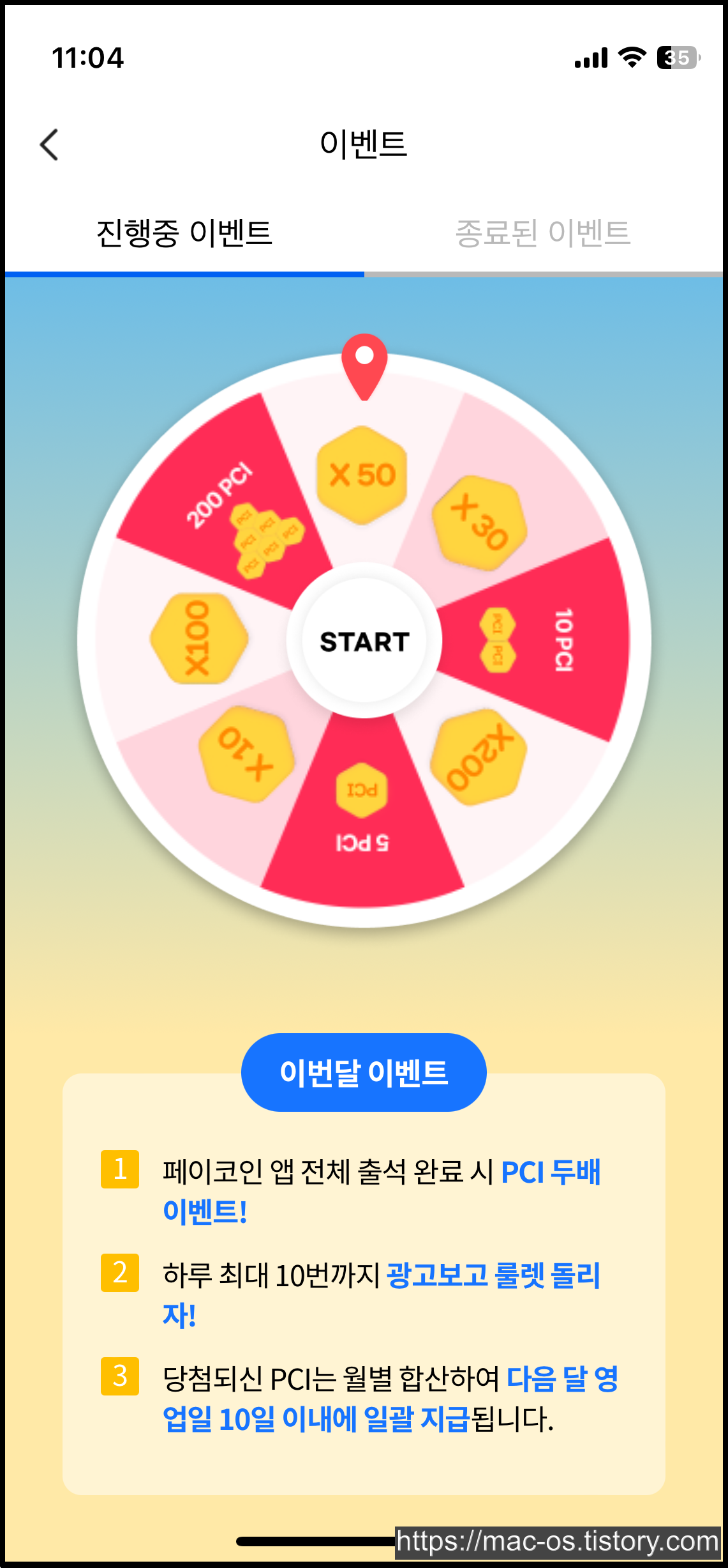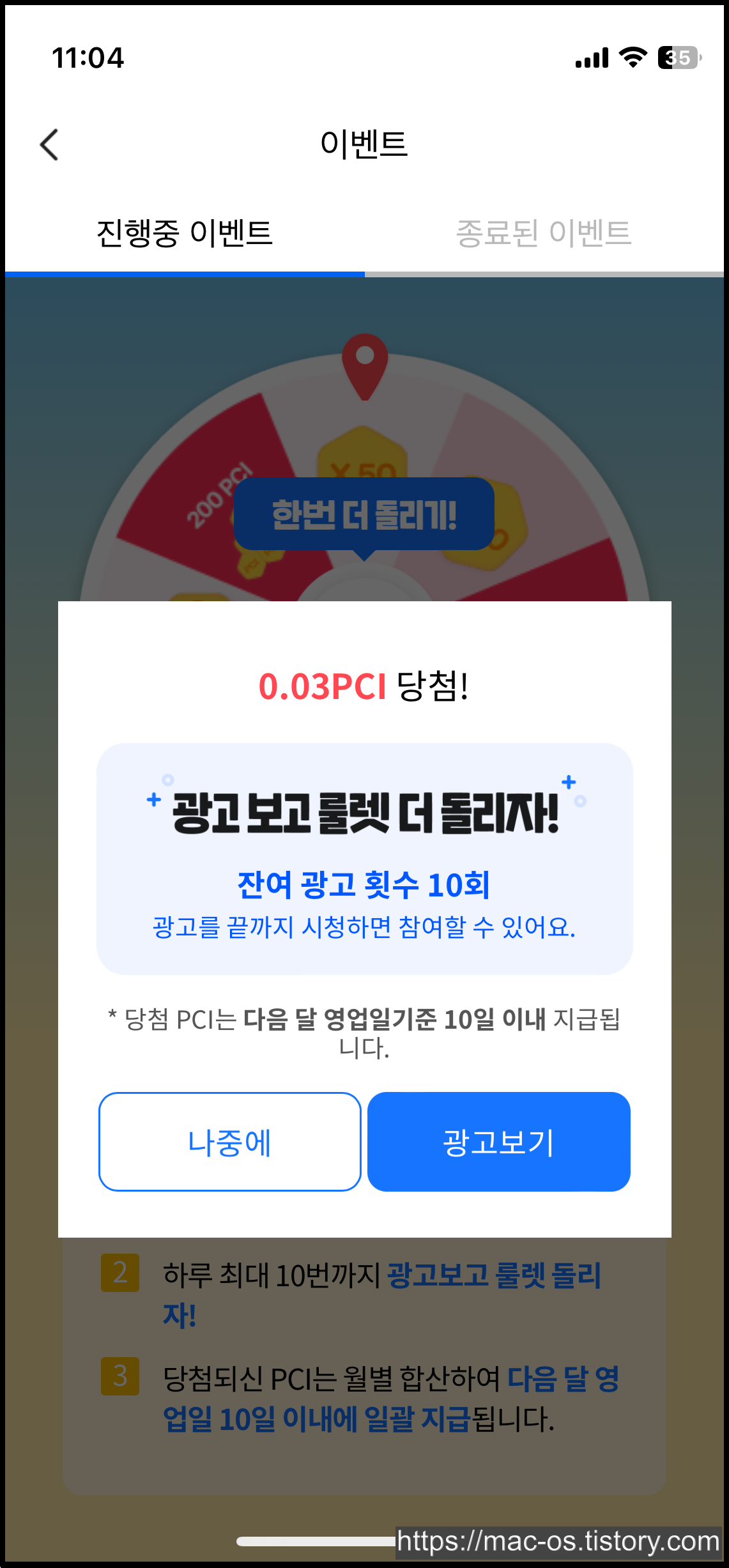 매일 1번씩 룰렛을 돌리고 PCI를 얻을 수 있습니다.