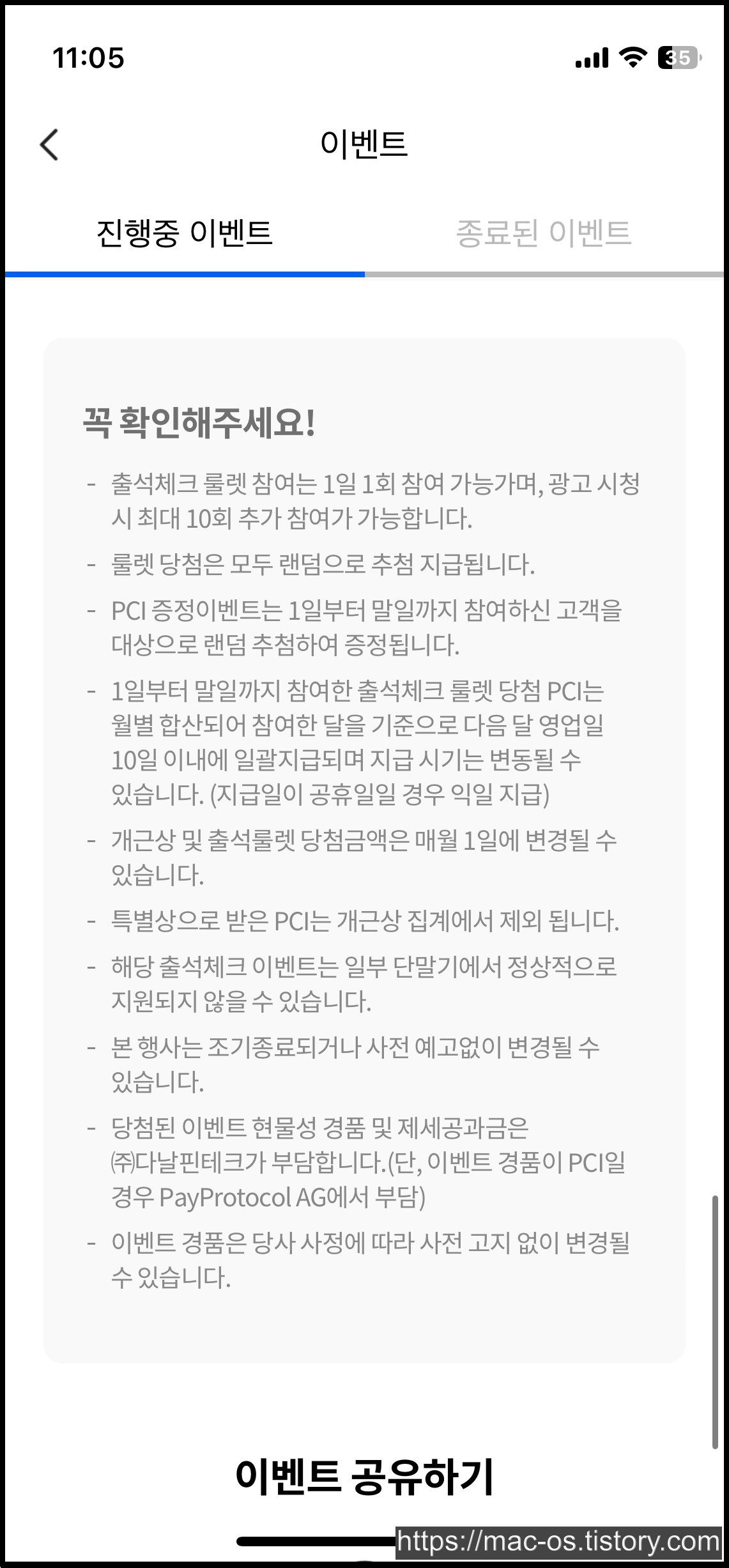 이벤트하고 기능이 별로 없는데요.