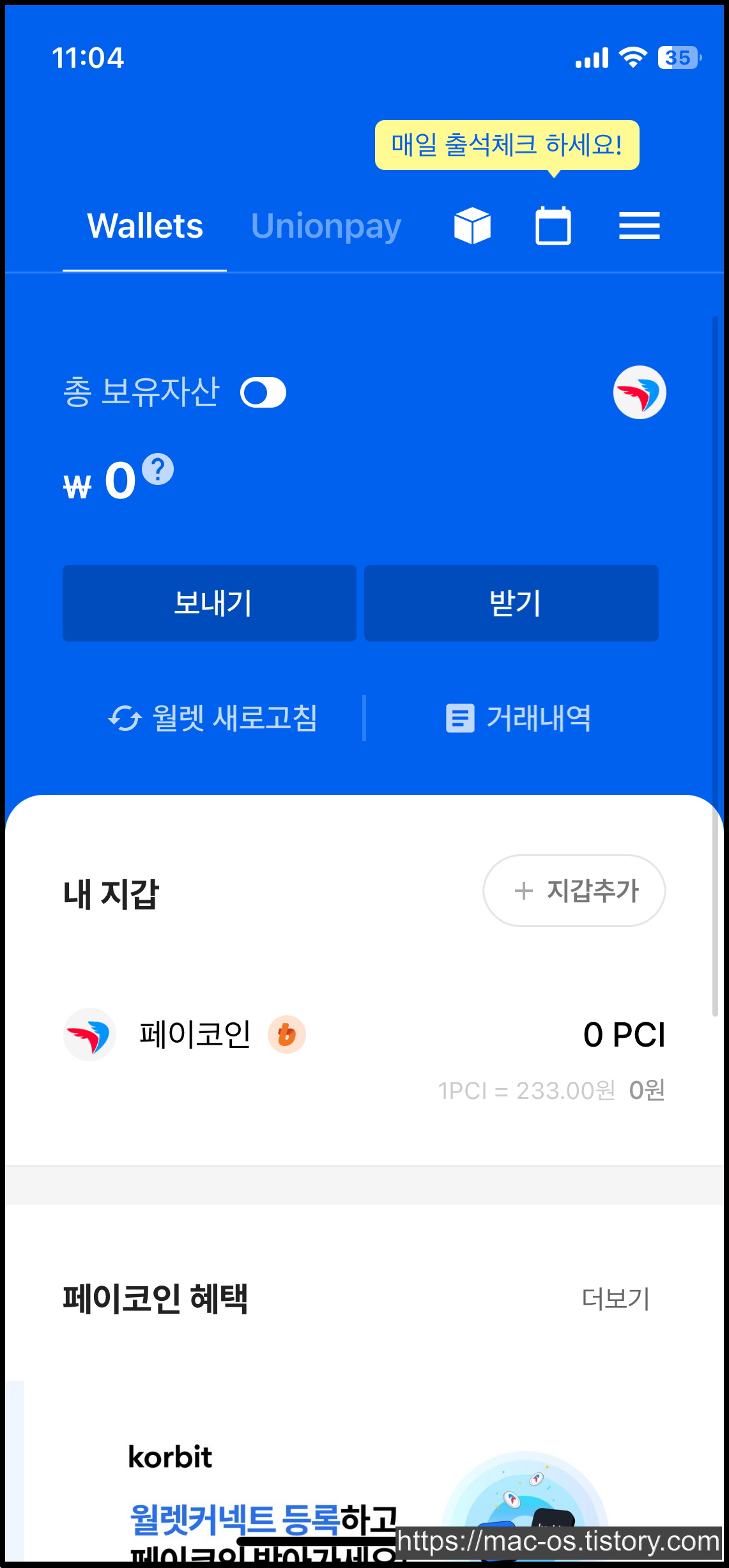 원래는 페이코인 앱에서 PCI 지갑이 있었고