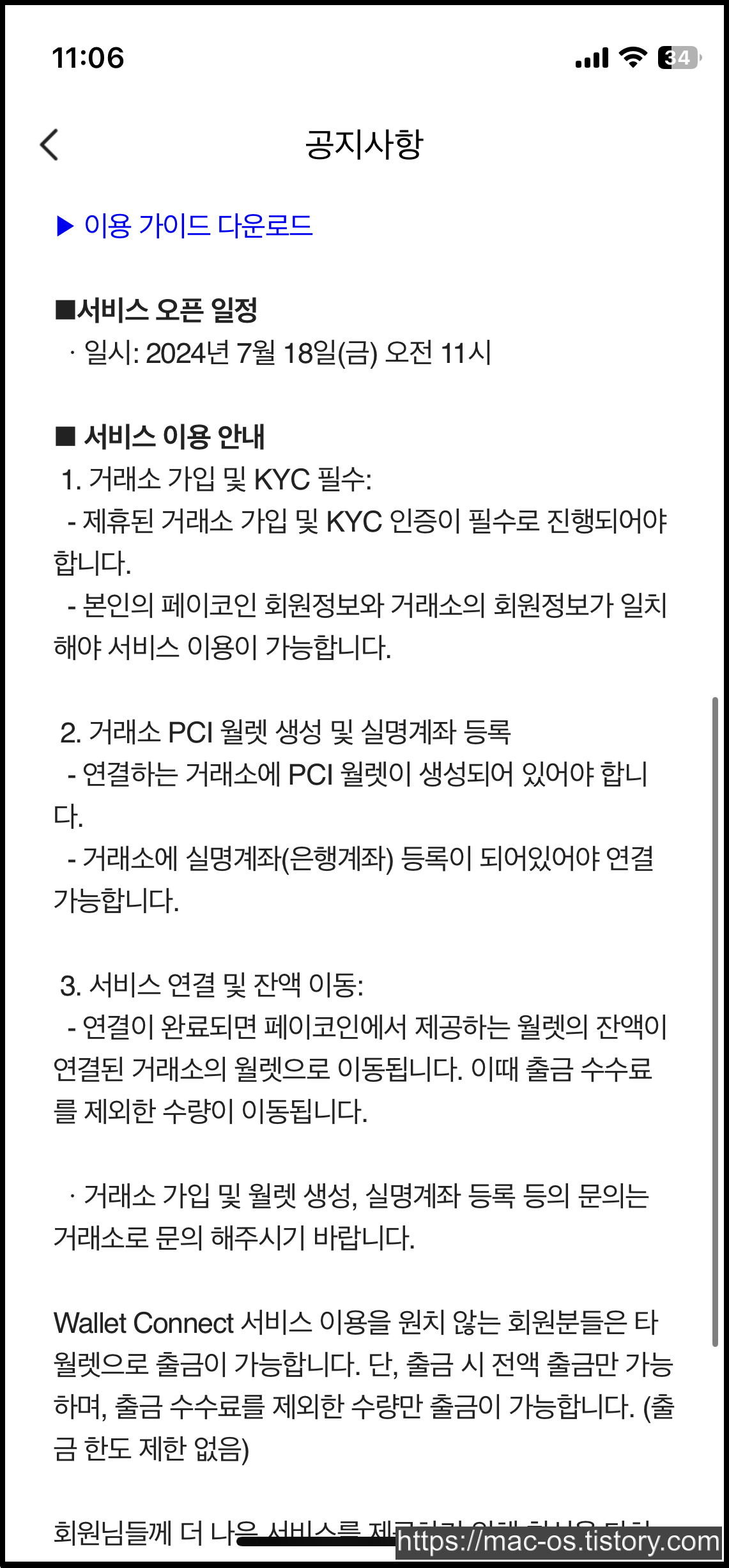 여기에 PCI를 보관해서 다른 거래소로 입금하면 됐는데