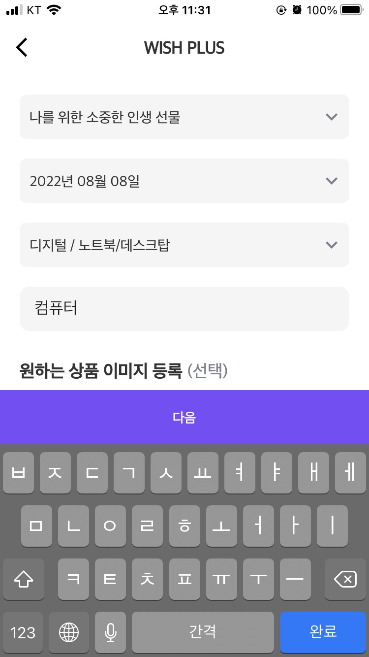 홈 화면에서 + 버튼을 누른 후, 그리고 WISH 플러스를 터치하면 버킷리스트를 등록하실 수 있습니다. 버킷리스트는 자신이 구매하고 싶은 물건의 상세 정보를 입력하기만 하면 되는 작업입니다. 버킷리스트는 하루에 최대 2번 등록할 수 있으며, 한달에 30회까지 등록할 수 있습니다.