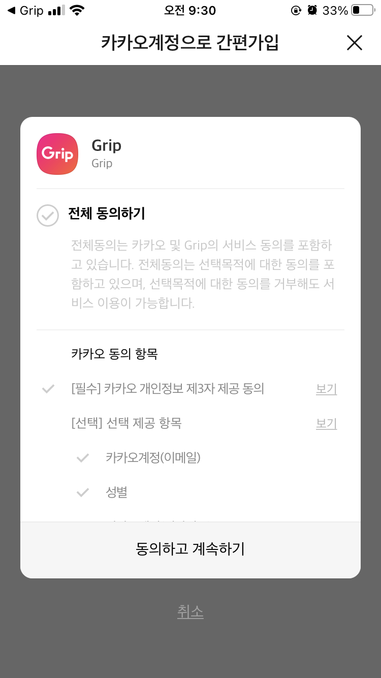 그립 어플을 설치하고 실행하면 마이페이지에서 회원가입을 진행할 수 있다. 회원가입 페이지에서 초대코드를 입력할 수 있는데, GMVSV28WWG를 입력하면 가입과 동시에 5,000원 쿠폰이 지급된다. 쿠폰은 최소 10,000원 이상 결제부터 사용이 가능하며, 기간은 30일이다.