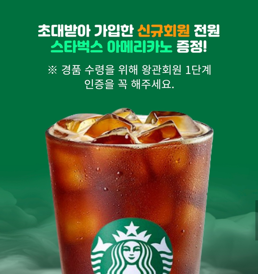 현재 굿모닝 기존회원에게 초대받아 가입한 신규회원에게 스타벅스 아메리카노 커피 1잔을 무료로 지급해주는 이벤트를 진행중이다.