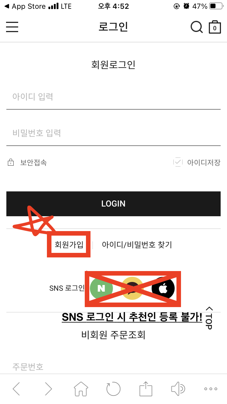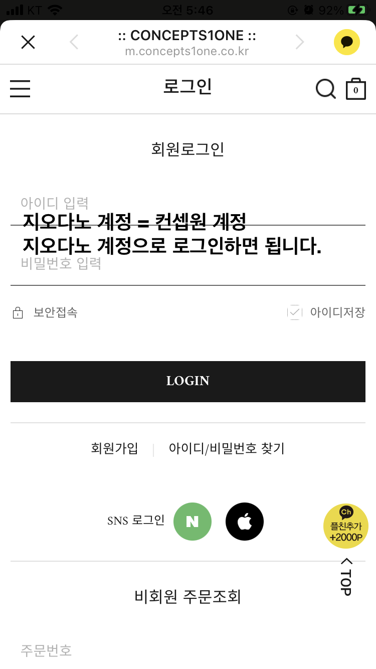 컨셉원 계정은 아까 가입했던 지오다노 계정과 동일하다. 지오다노 아이디/비밀번호로 로그인하면 된다.