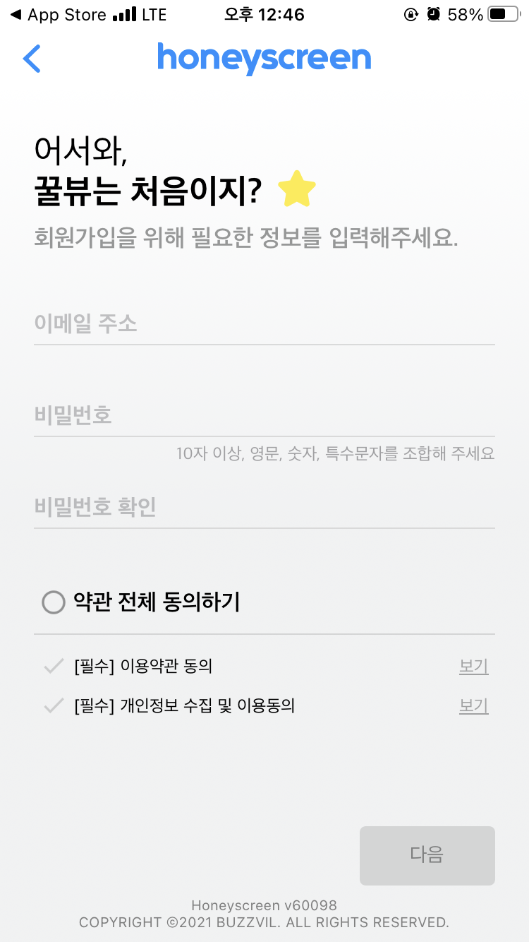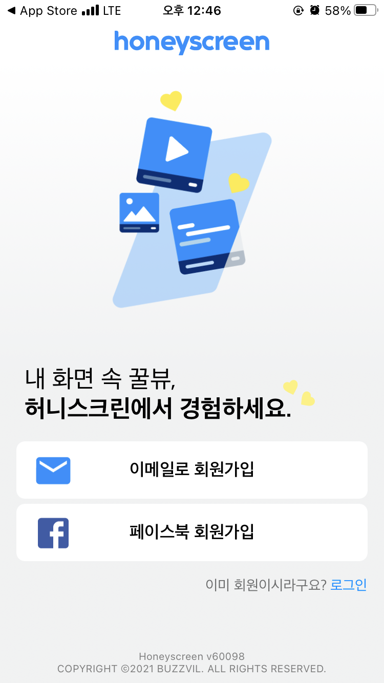 Google Play 혹은 App store에서 앱을 설치하실 수 있습니다. 이메일이나 페이스북 계정으로 회원가입이 가능합니다. 저는 이메일로 회원가입을 진행하였습니다.