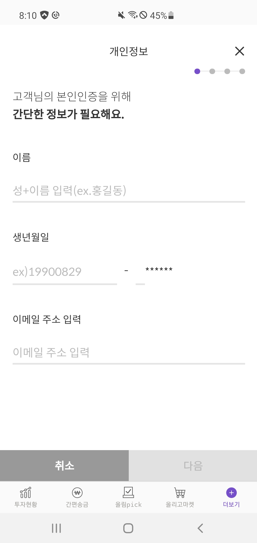 시작하기를 누르고, 이름과 생년월일, 이메일 주소를 입력해 준다.