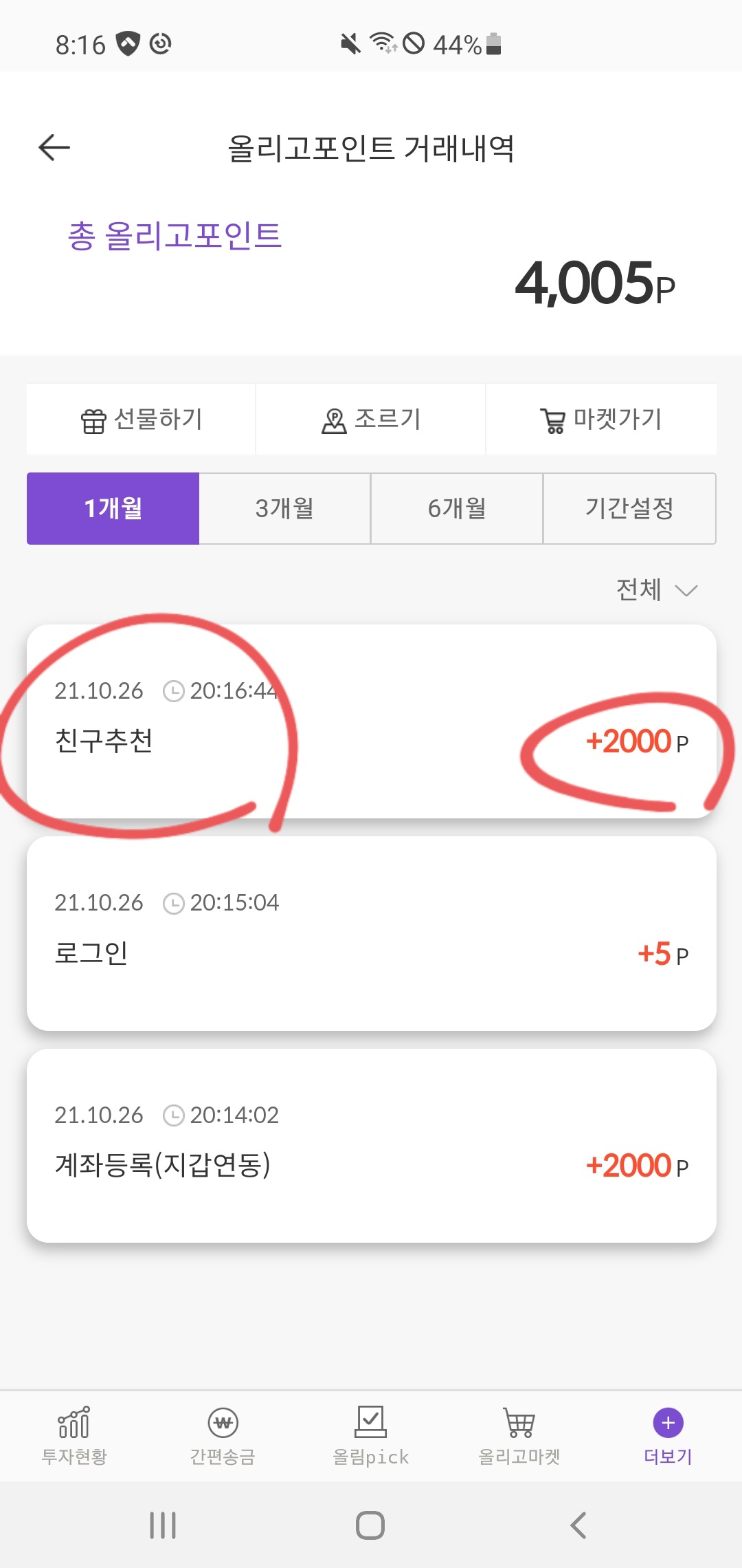 라. 혜택 : 가입 과정에서 계좌 연동(+2,000P), 추천인 코드 입력(+2,000P)