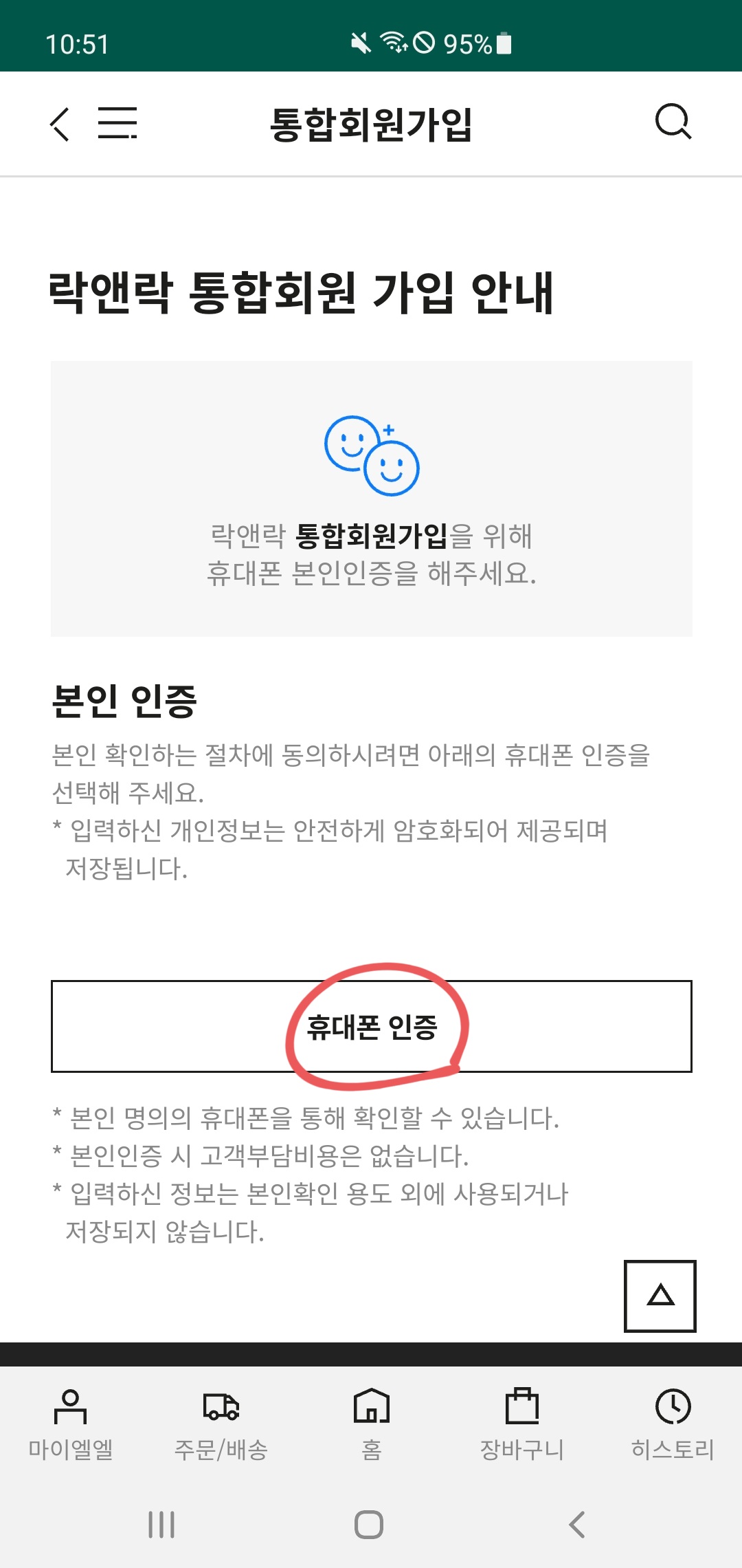 회원가입 페이지에서 '통합회원가입하기'를 터치하면 된다.