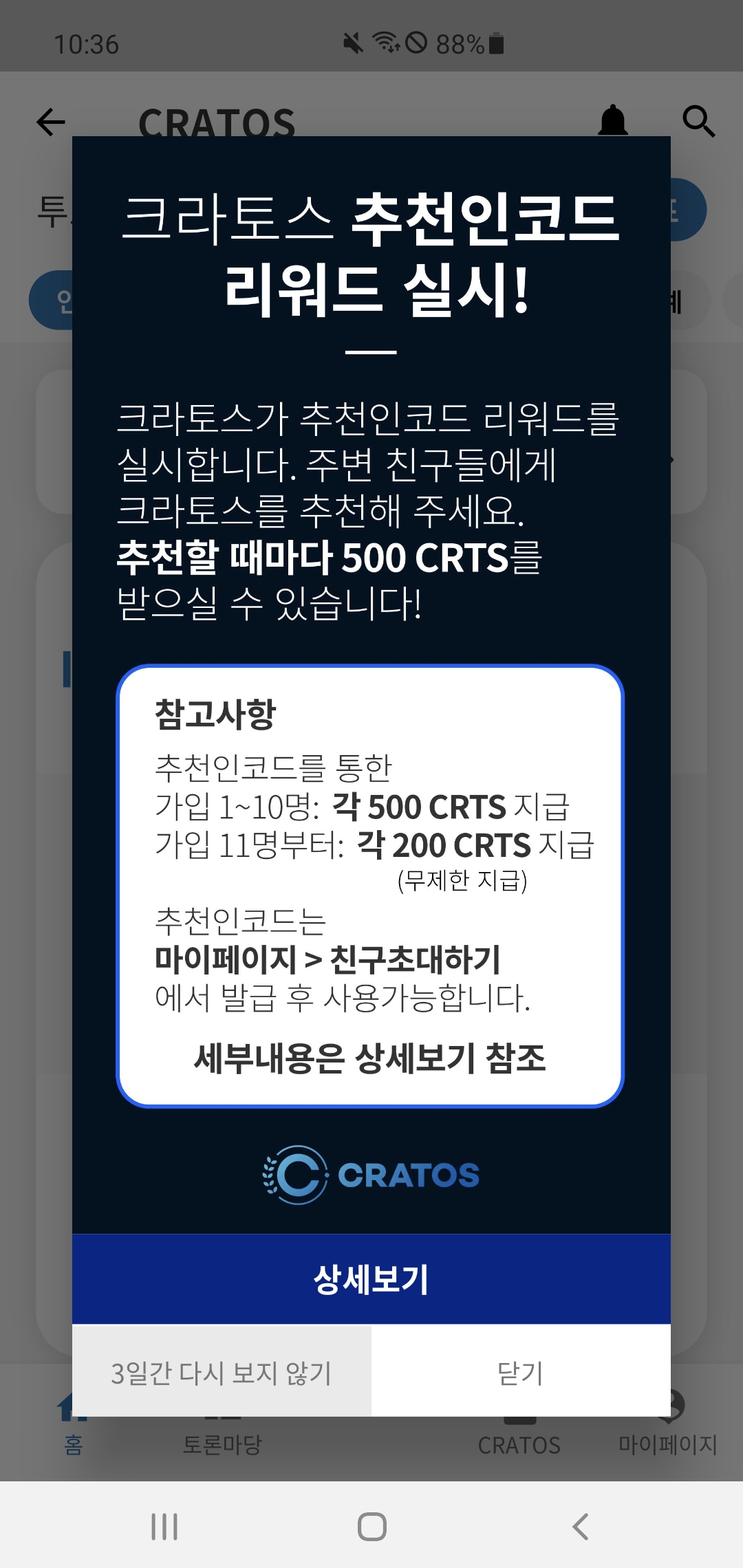 다. 초대링크 : https://cratostoken.page.link/buYzptpvFnt9BrKo8