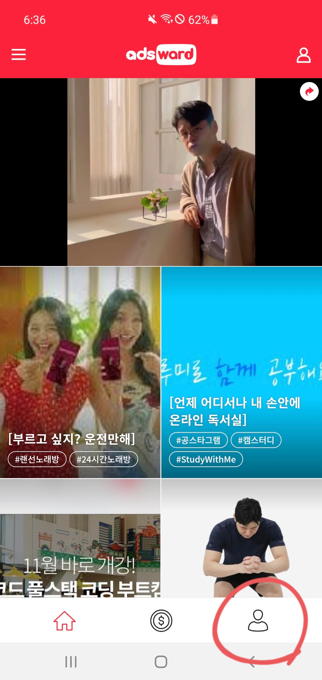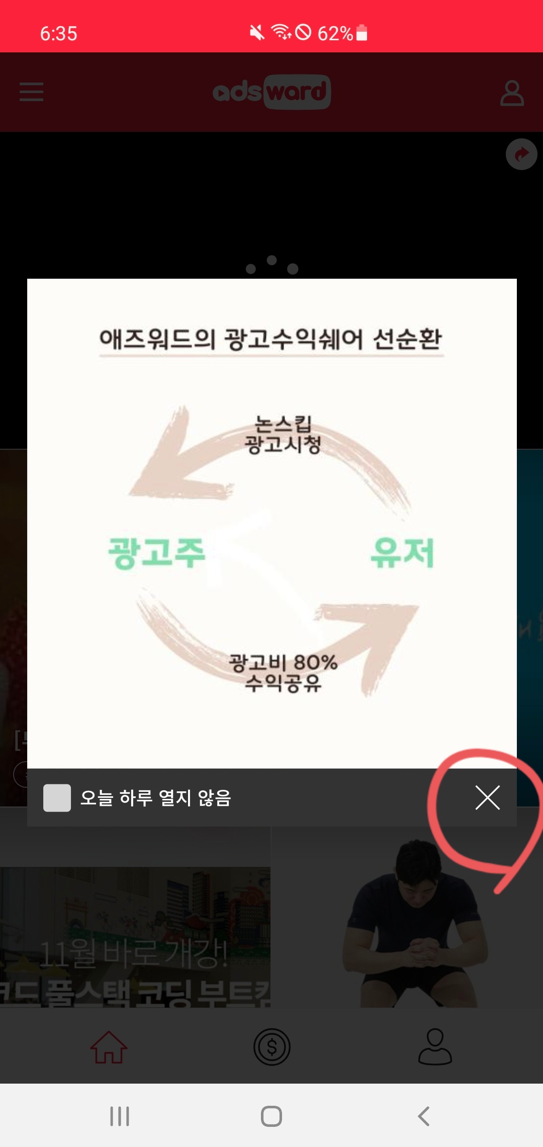 애즈워드는 광고를 스킵하지 않고 끝까지 시청한 유저에게 광고 수익의 80%를 지급해 주는 어플이다. 앱 실행 화면에서 볼 수 있는 애즈워드의 슬로건도 "우리였어요. 광고 수익의 주인은"이다.