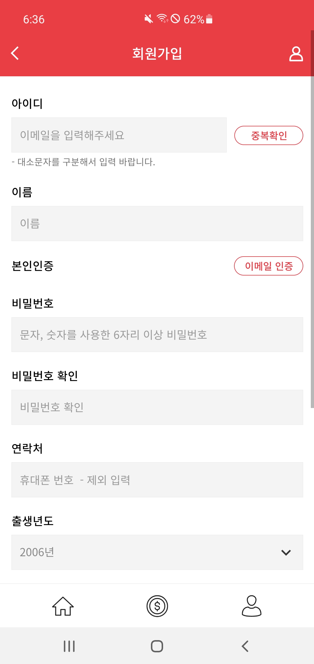 3. 로그인 페이지에서 회원가입 클릭 후 아이디, 이름 등 개인 정보 입력한다.