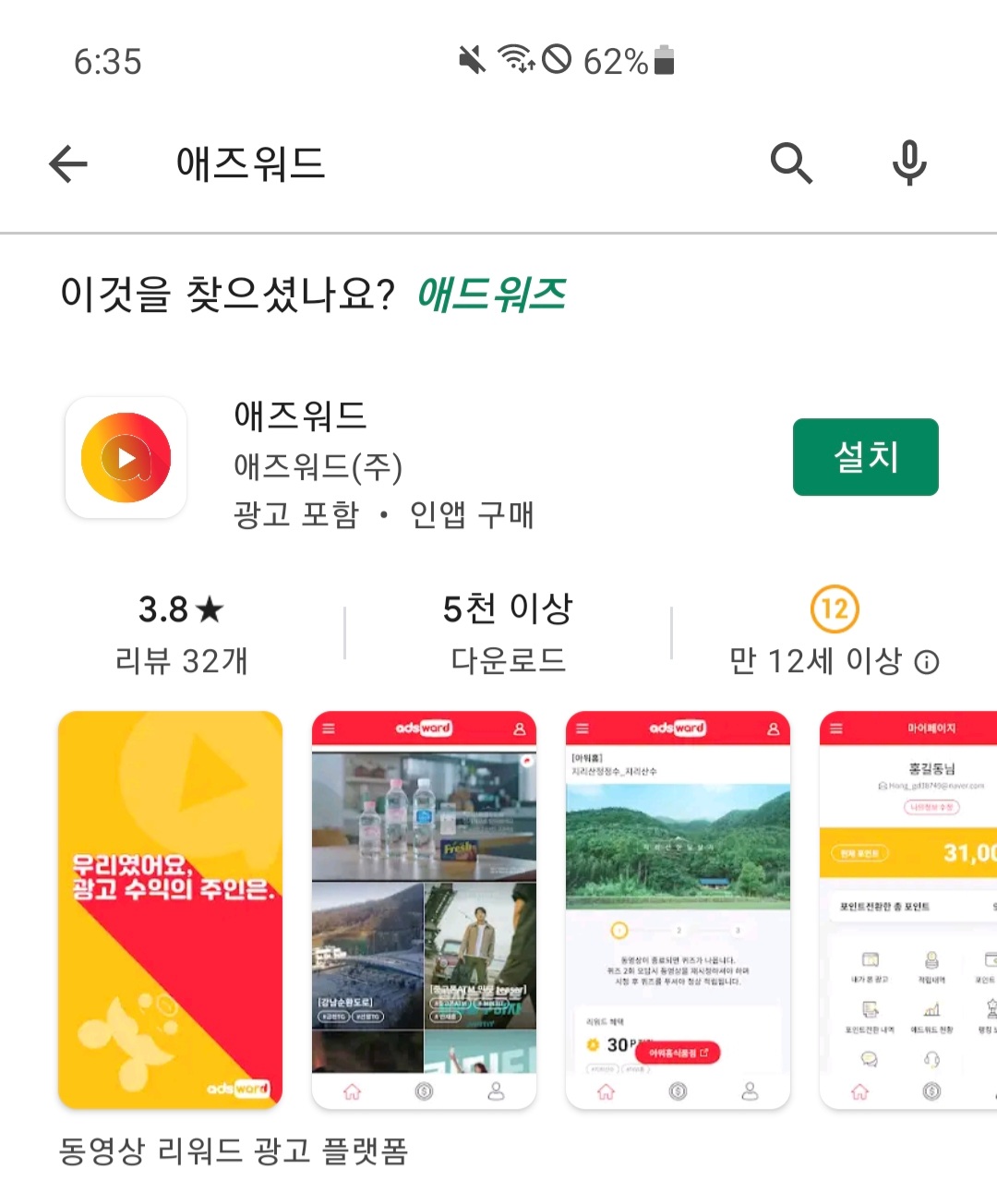 1. 구글 플레이 스토어에서 애즈워드 앱 설치 후 실행한다.