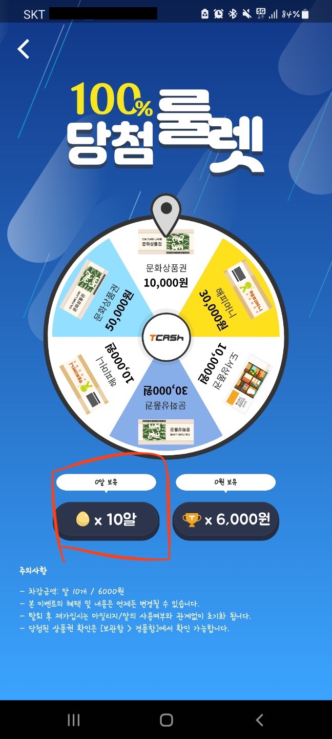 2) '혜택' > '알 넣고 상품권 뽑기' 페이지에서 금쪽 같은 내 알 10개를 넣고 100% 당첨 룰렛을 1회 돌리는 방법